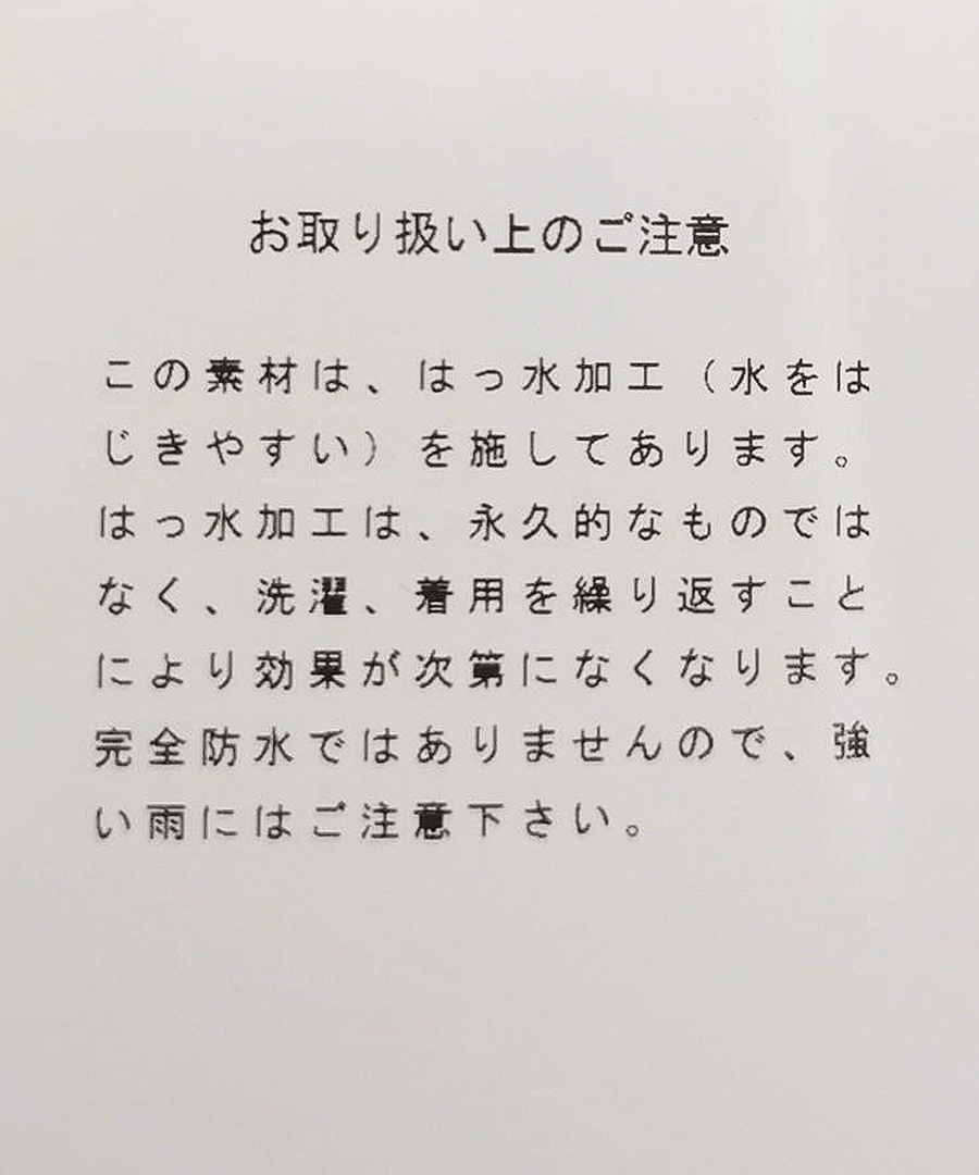 100回の洗濯でも撥水機能を保持するダントツ撥水加工を