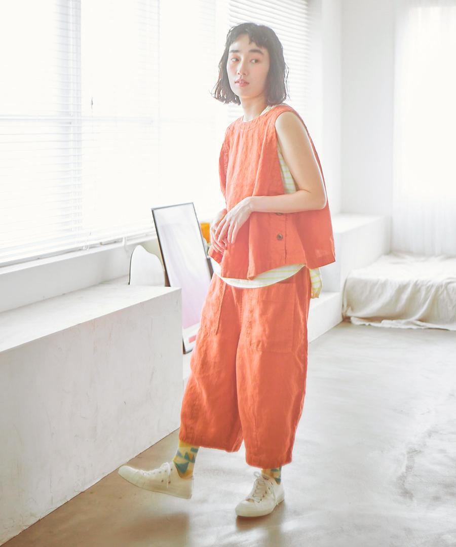◆こちらの製品はリネン素材を使用しております。 その為リネン特有のネップ(小さな玉のようなもの)や織の節が見られることがあります。 これはリネン素材の持つ特性で自然に出るものです。 リネンならではの風合いとしてお楽しみください。