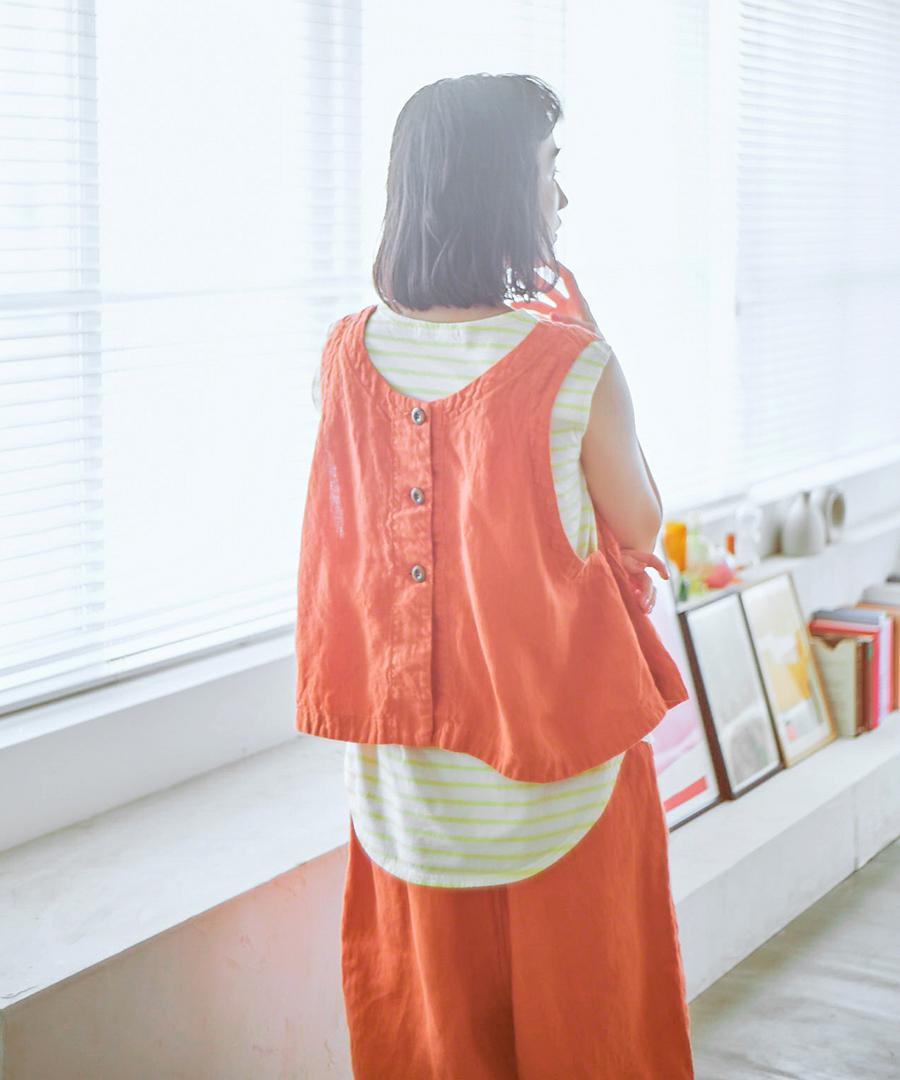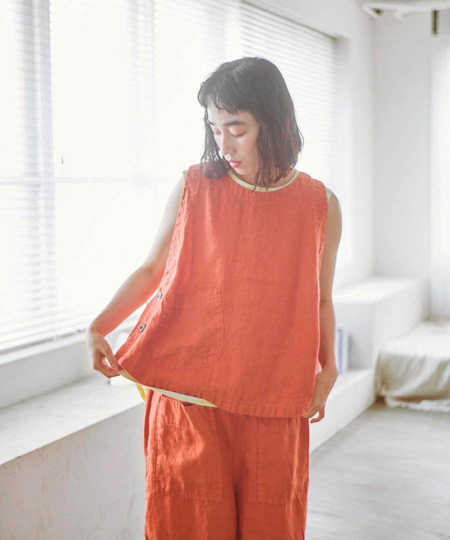 定番人気の、ソリトリネン①(※下記に詳細あり)素材のリネン2wayベスト。