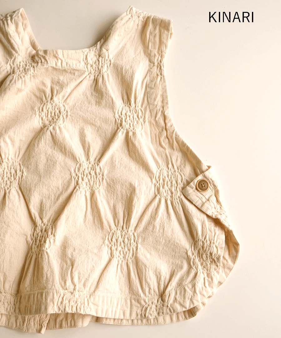 生地感は程よいハリがあり、軽くてとても柔らか。ストレッチ性もあるため動きやすさも抜群です。パフジャガードの凹凸が刺繍の様で、シンプルな形の中に奥行きをプラス。