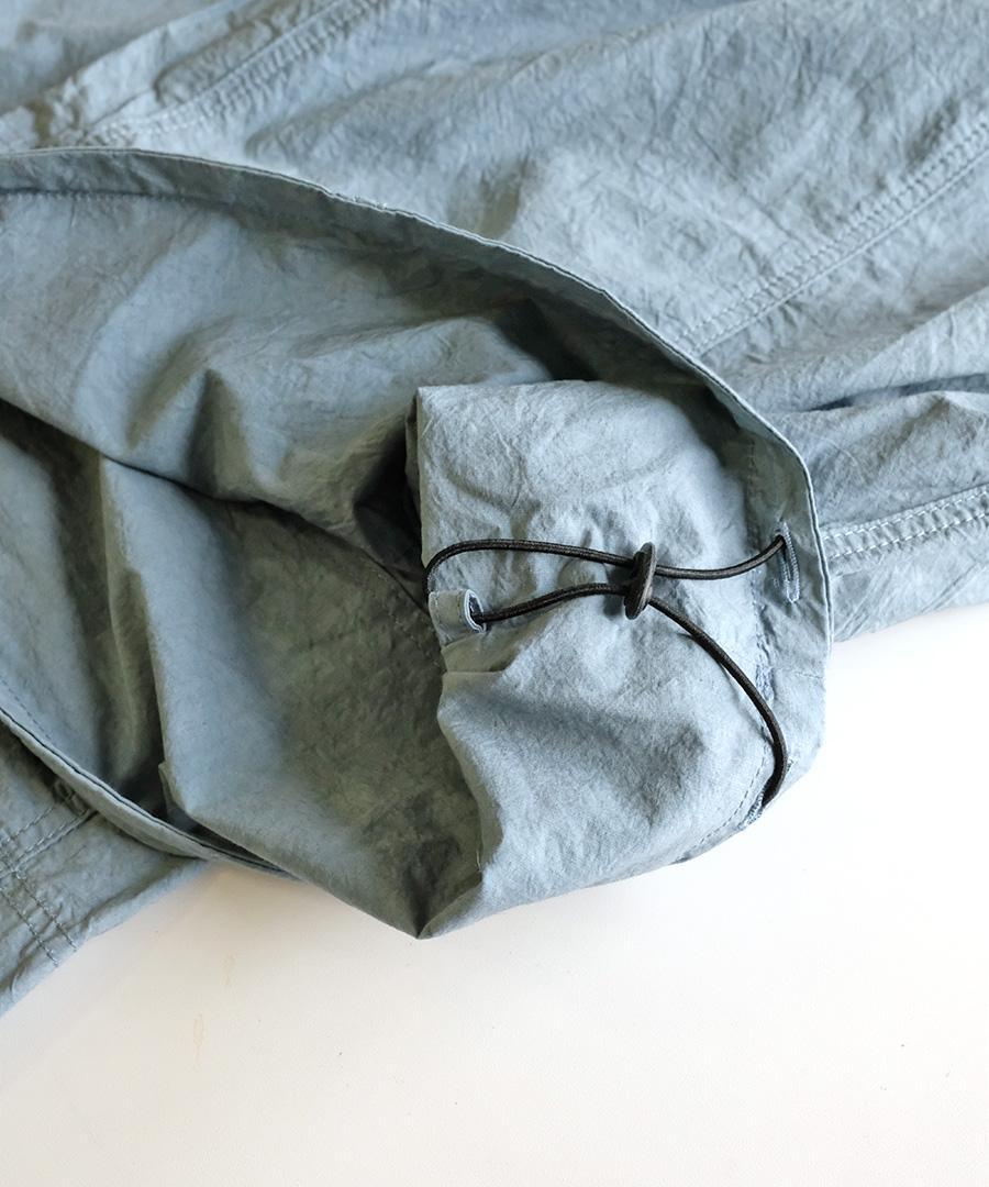 高密度に織り上げたタイプライター生地に、特殊な染め加工「ファナージュ」を施した一着。ハードな工程を経て生まれた独特のムラ感とヴィンテージライクなシワ感は、新品でありながらどこか愛着の湧く豊かな表情が魅力です。