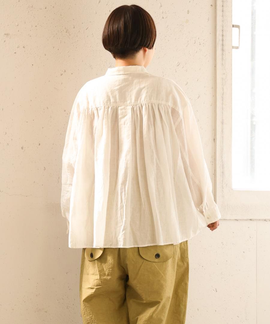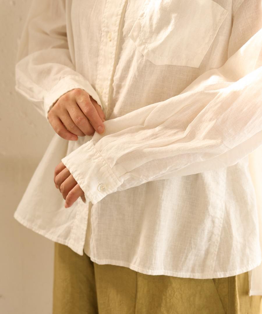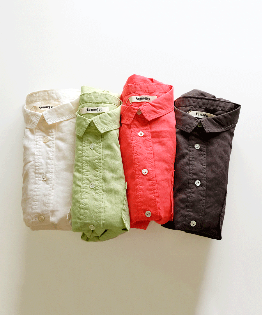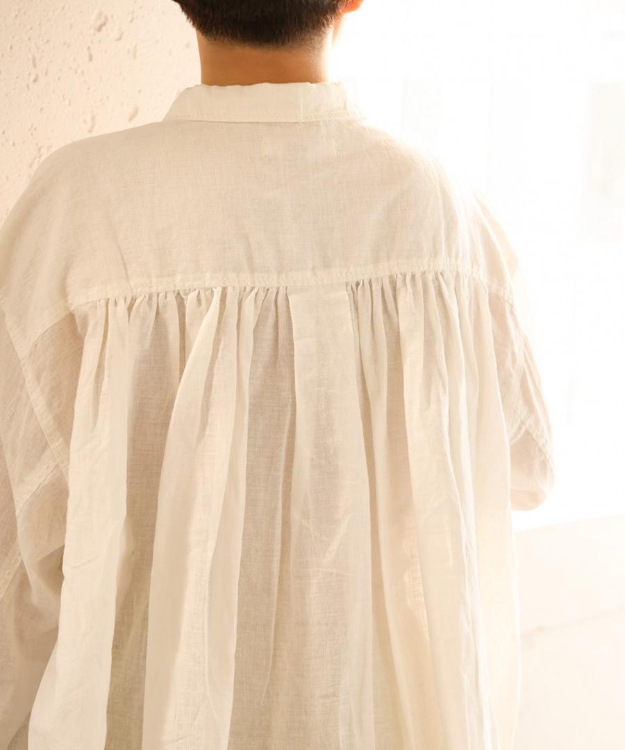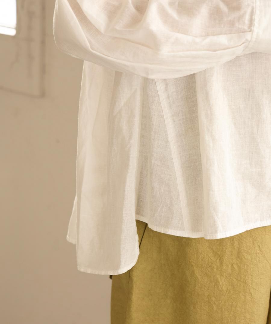 繊細で透け感のあるコットンリネンボイル生地に、ステッチを効かせた、tumugu:らしい遊び心たっぷりの一着です。