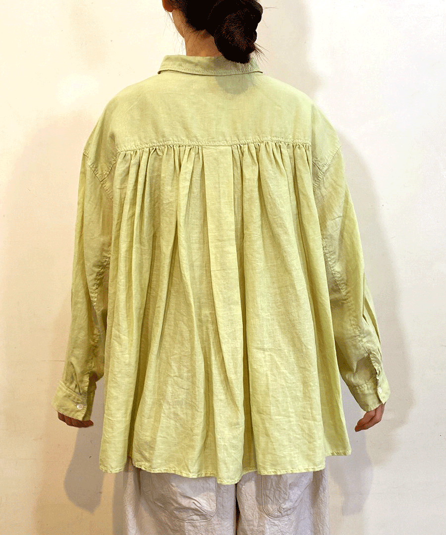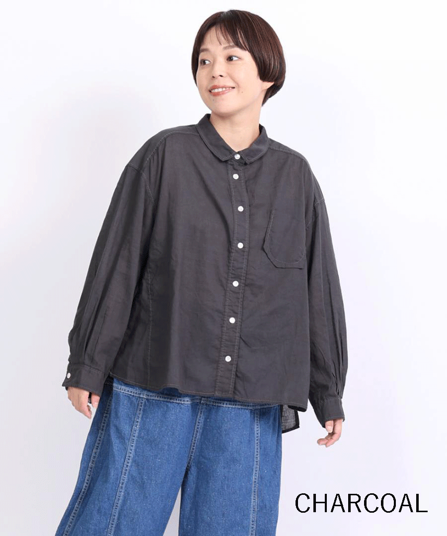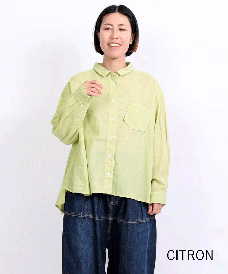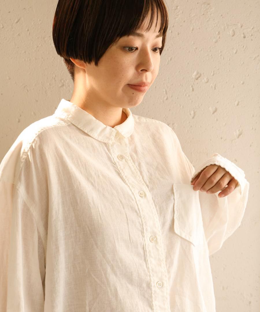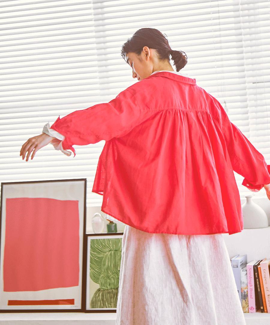 繊細で透け感のあるコットンリネンボイル生地に、ステッチを効かせた、tumugu:らしい遊び心たっぷりの一着です。