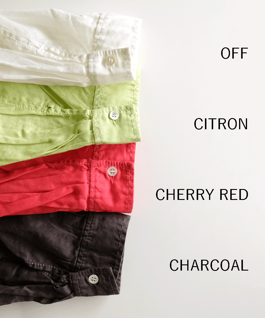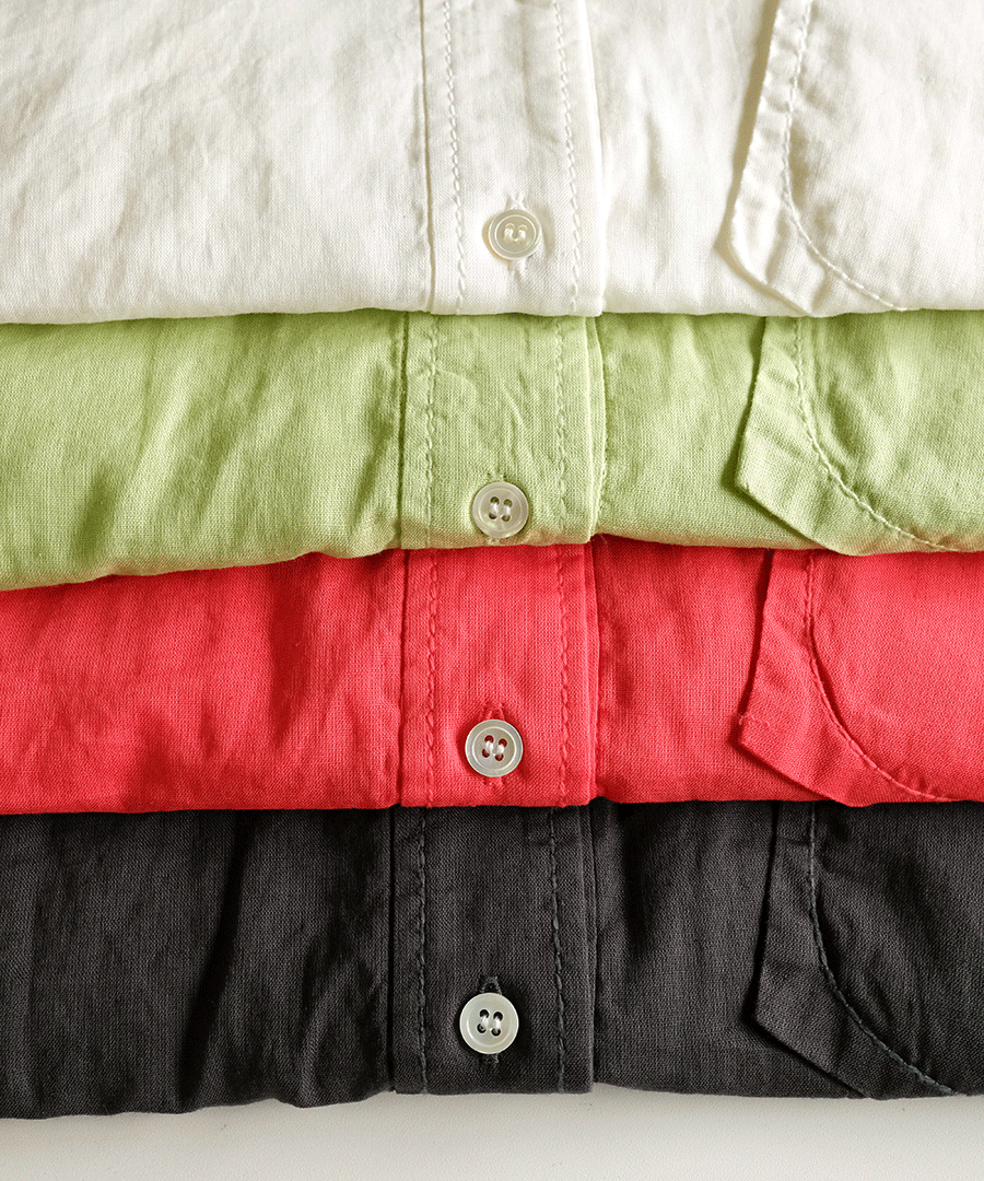洗いと染め加工による鮮やかなカラーと自然なシワ感のあるボイル生地に施した、太番手のステッチ。シンプルな中に程よいアクセントが加わり、大人の遊び心を演出します。