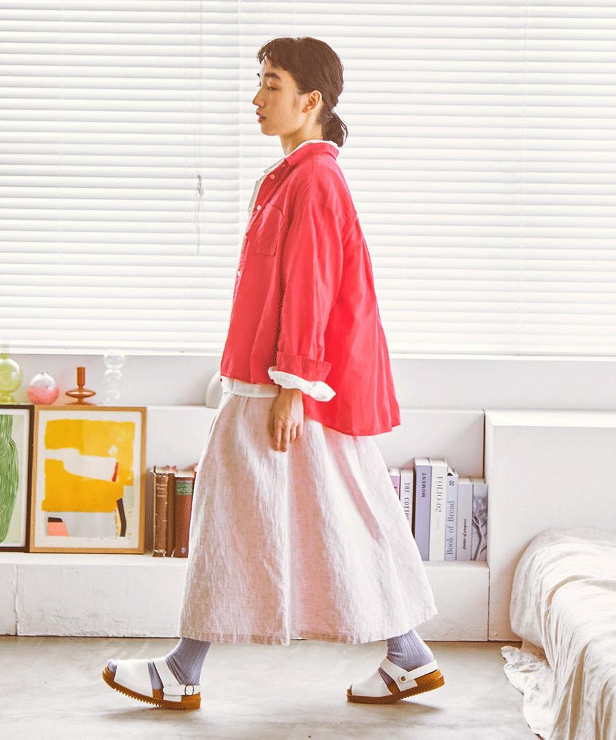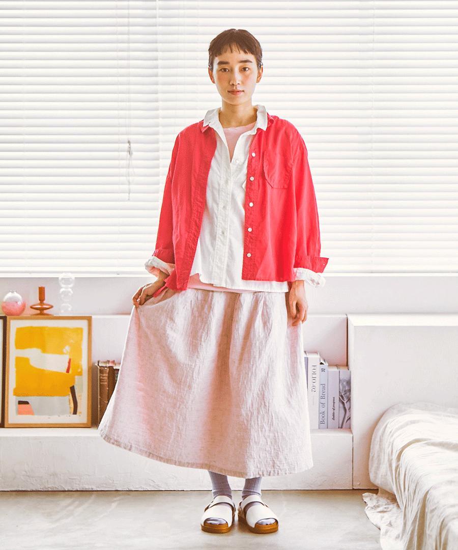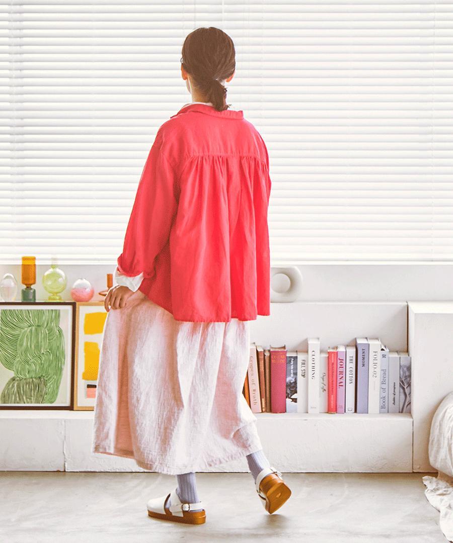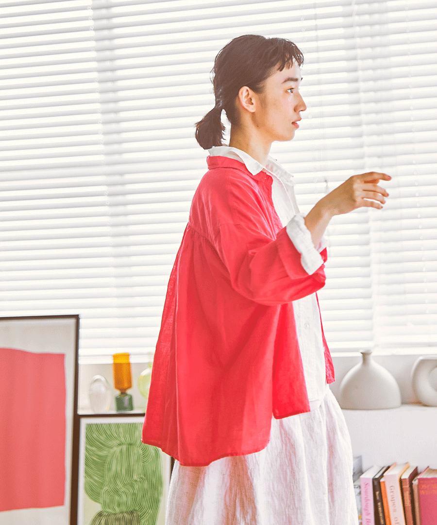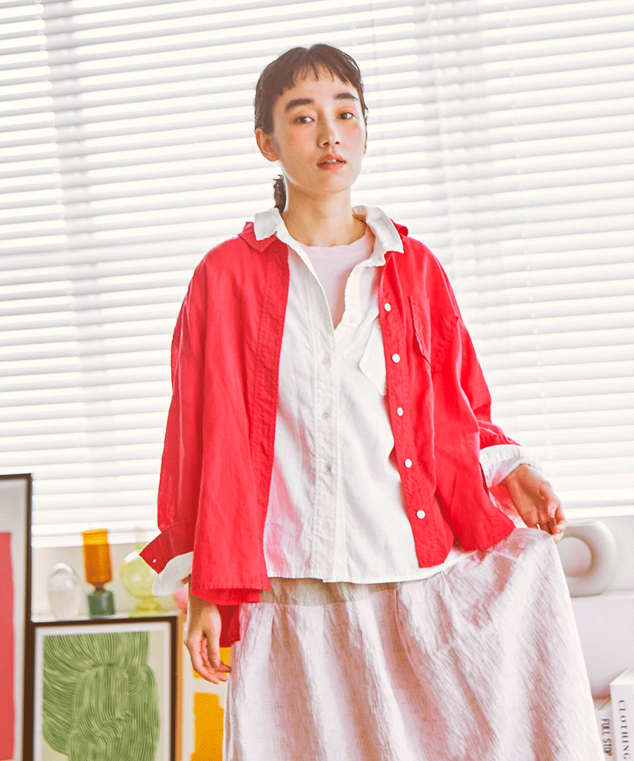 羽織るだけで、ぱっと鮮やかなカラーが映える、春の装いにおすすめのシャツです。