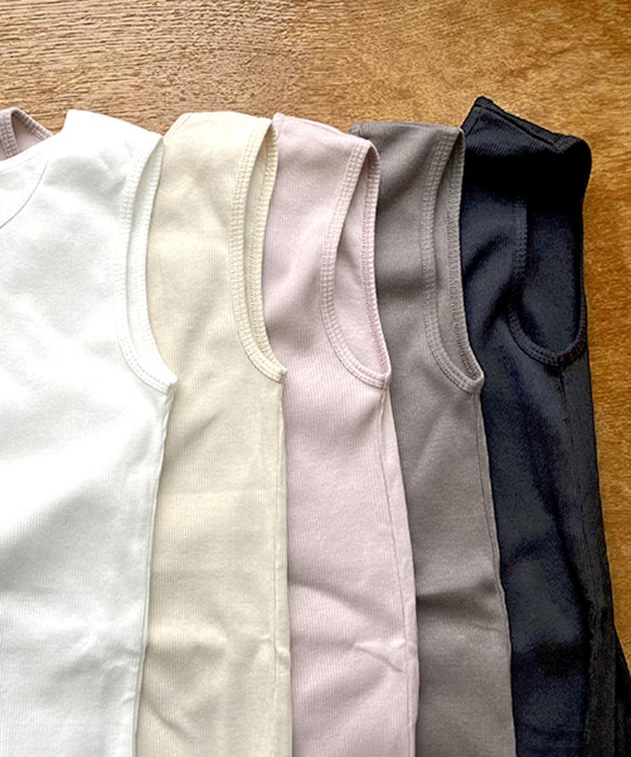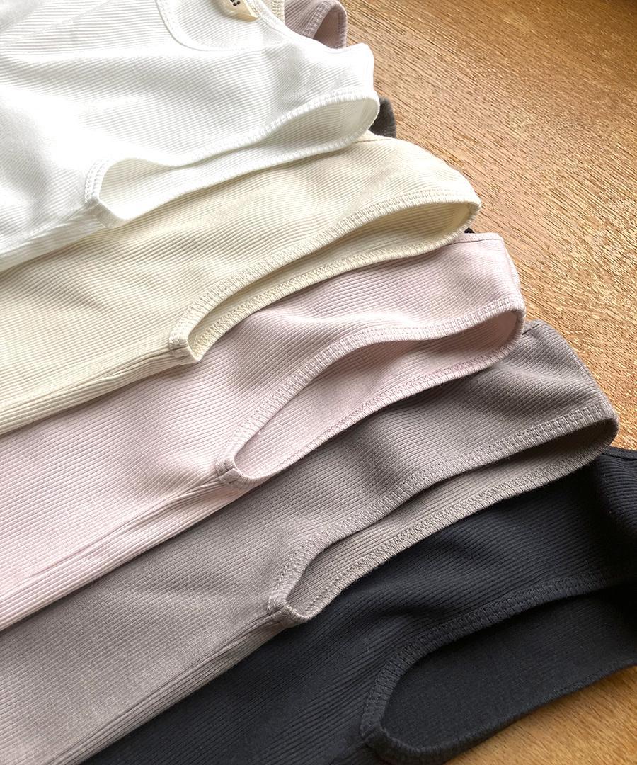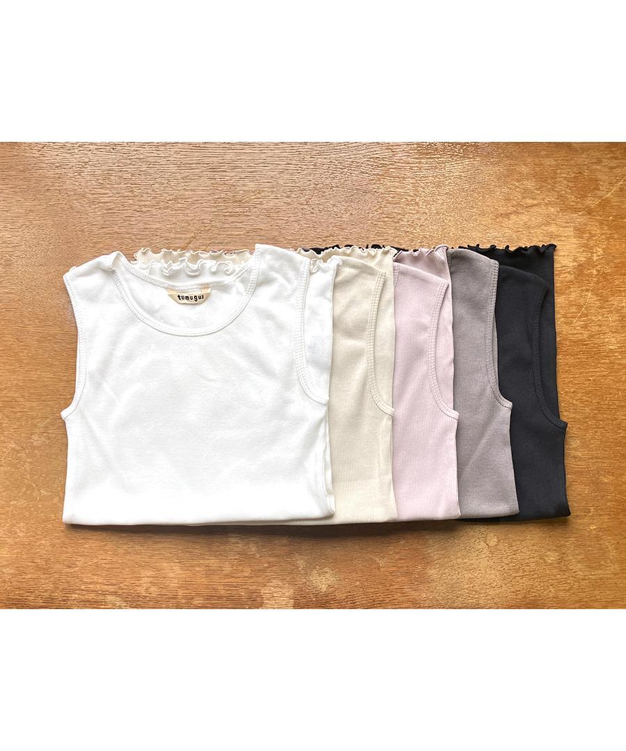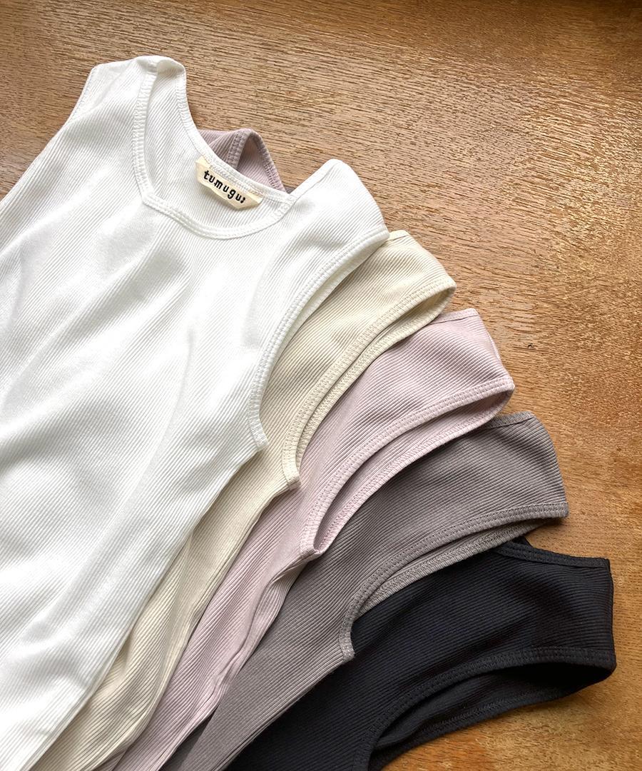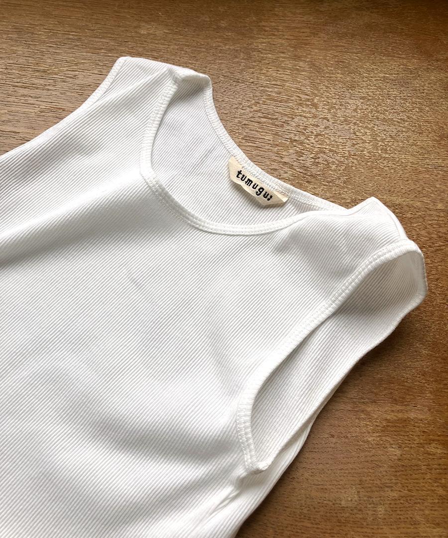 tumuguオリジナルのテレコ生地を使った、インナーにピッタリのタンクトップです。