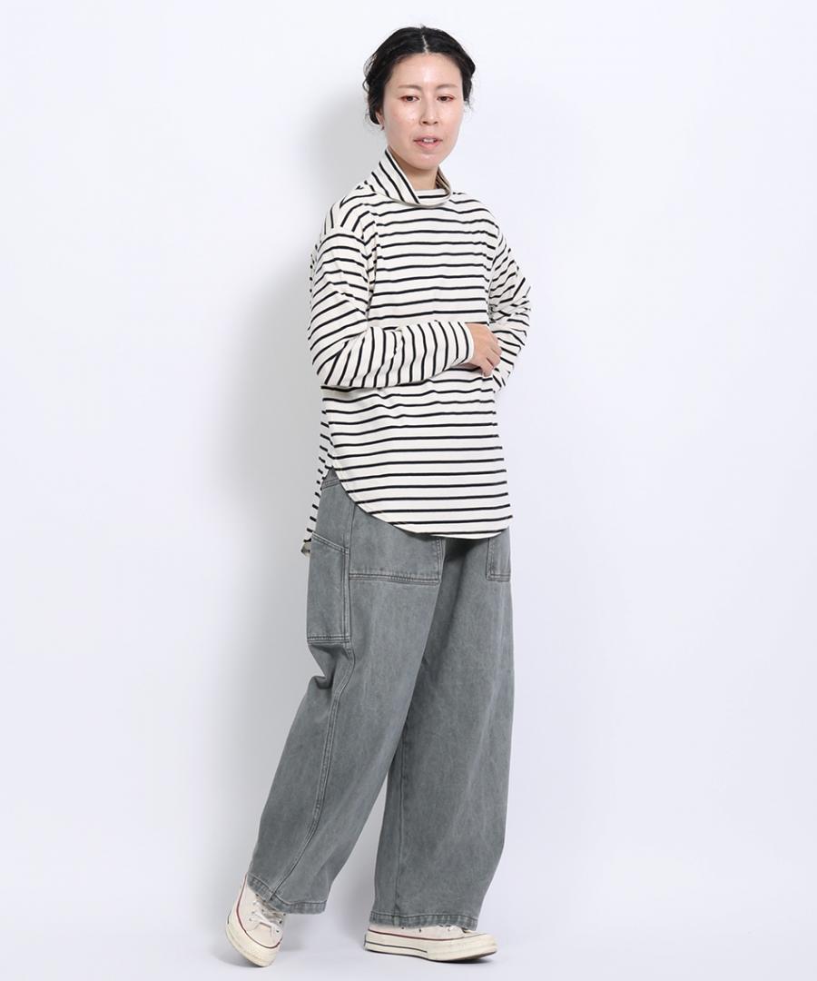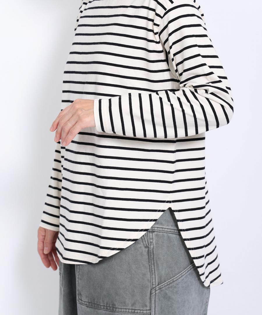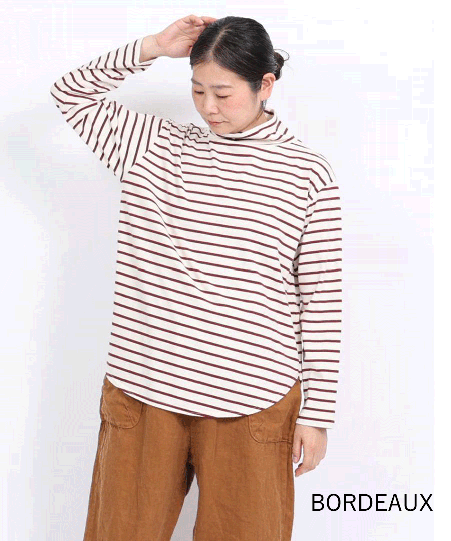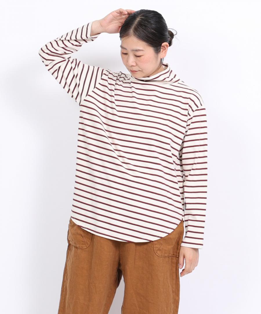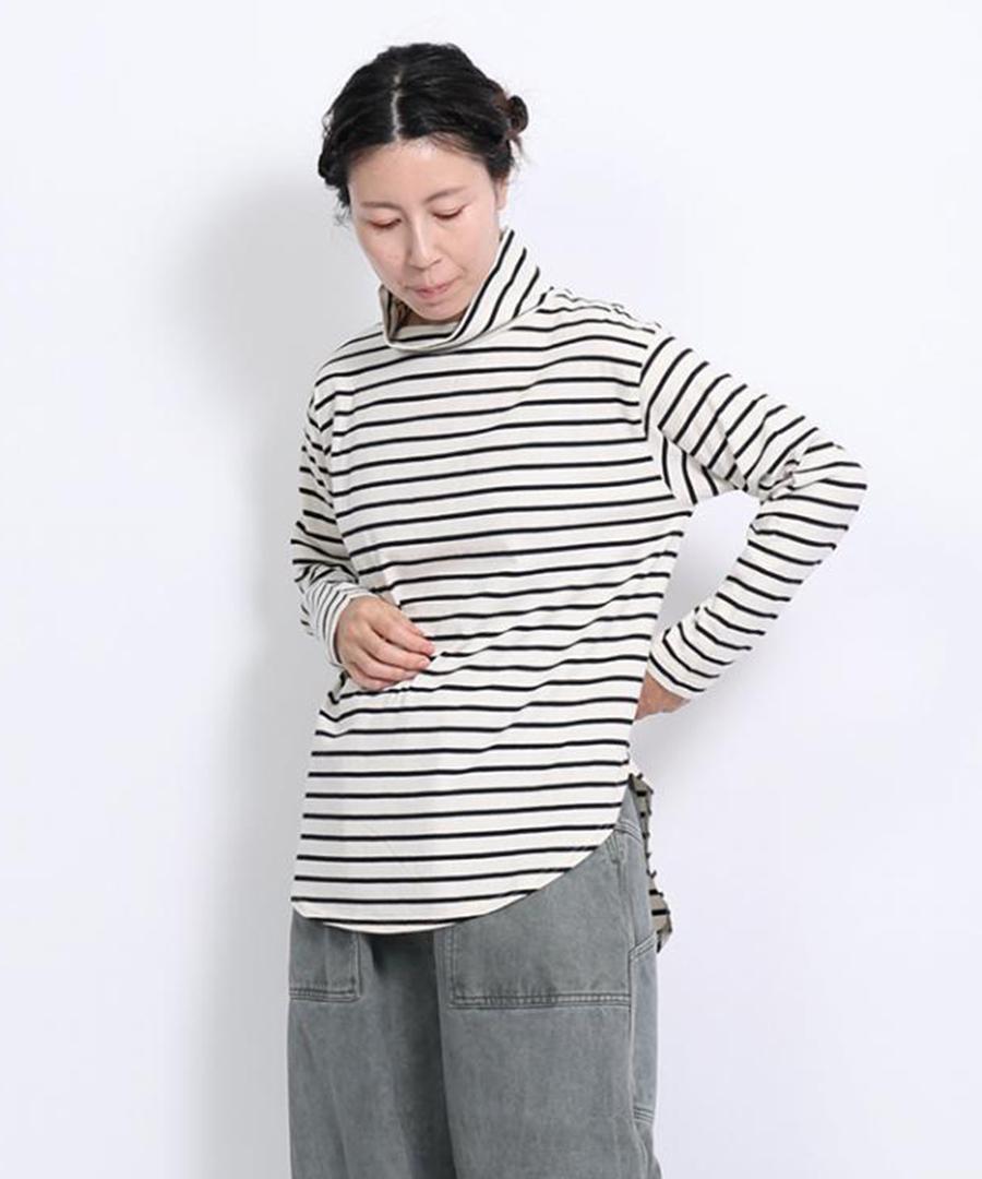 スープレコットンボーダー天竺 ハイネックロングT