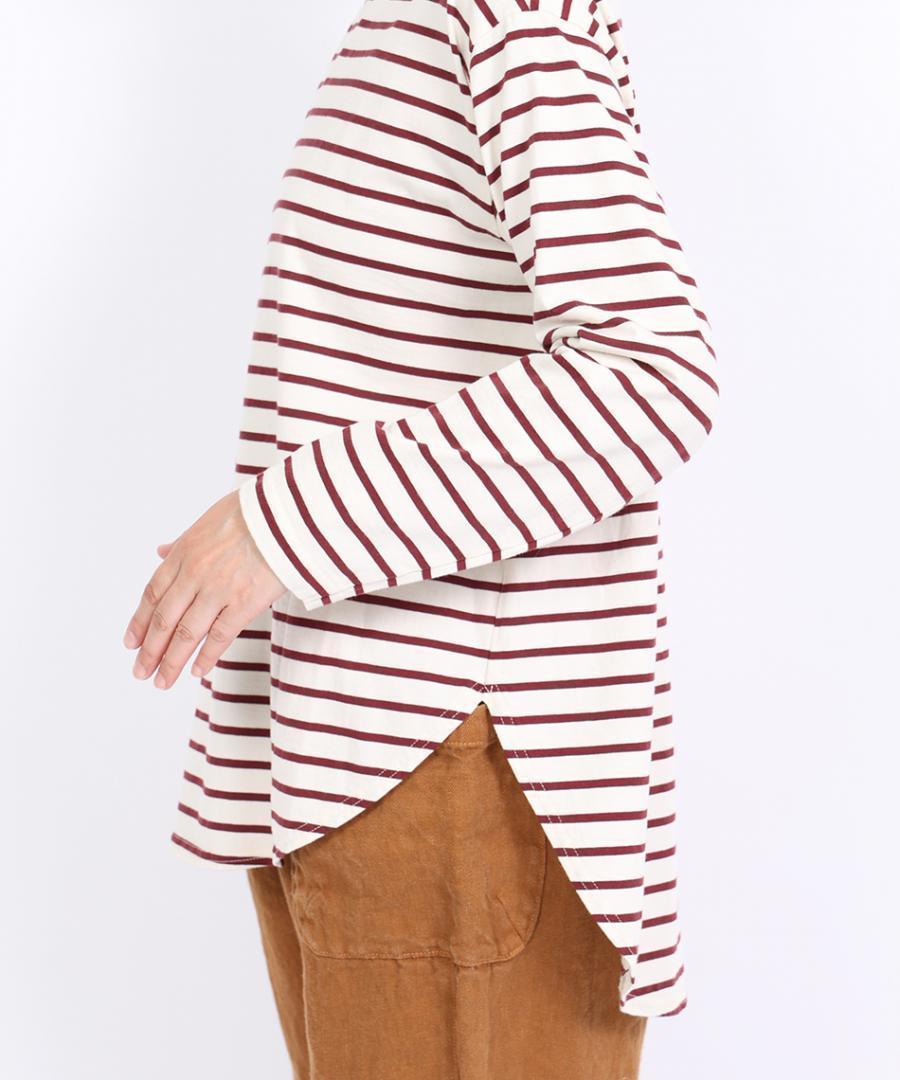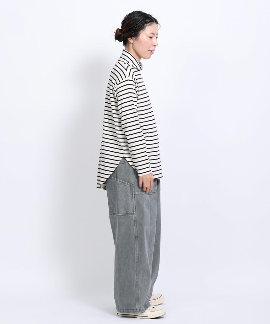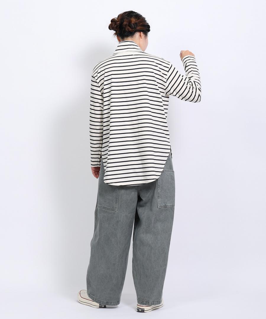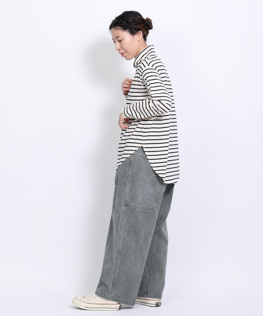 ニットやスウェットと重ね着した際に、裾からボーダー柄をのぞかせることで、レイヤードスタイルをお楽しみいただけます。