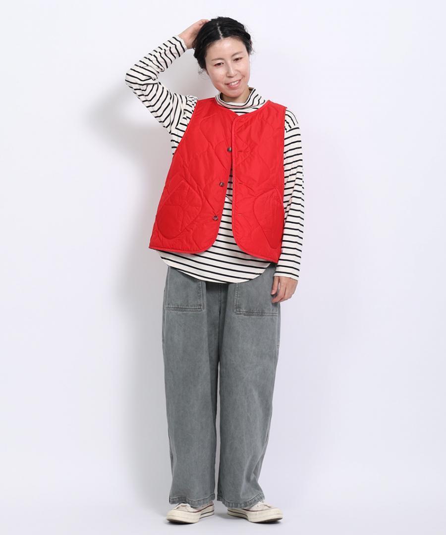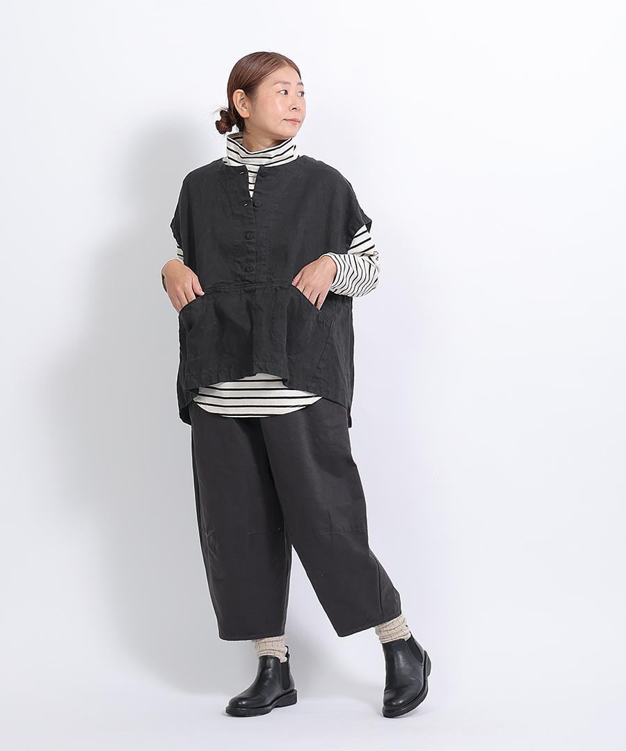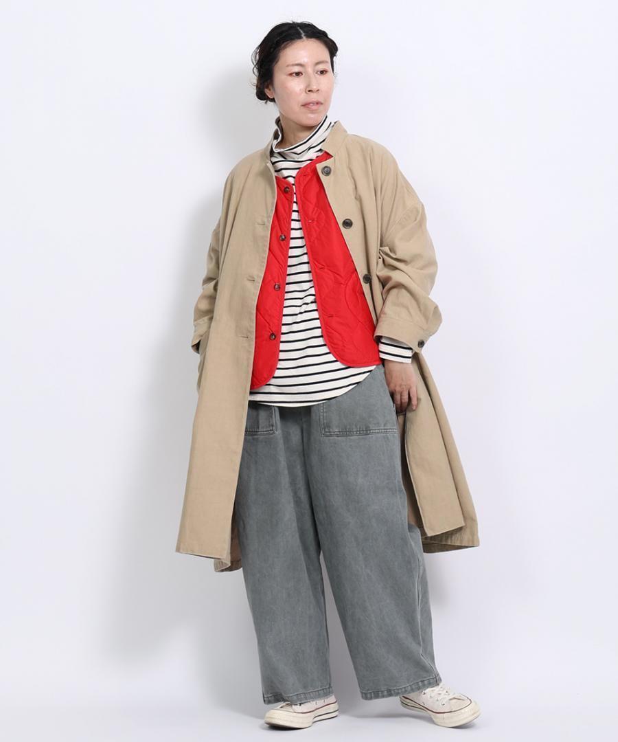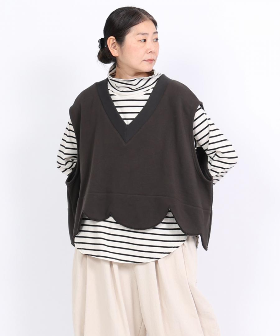 ニットやスウェットと重ね着した際に、裾からボーダー柄をのぞかせることで、レイヤードスタイルをお楽しみいただけます。