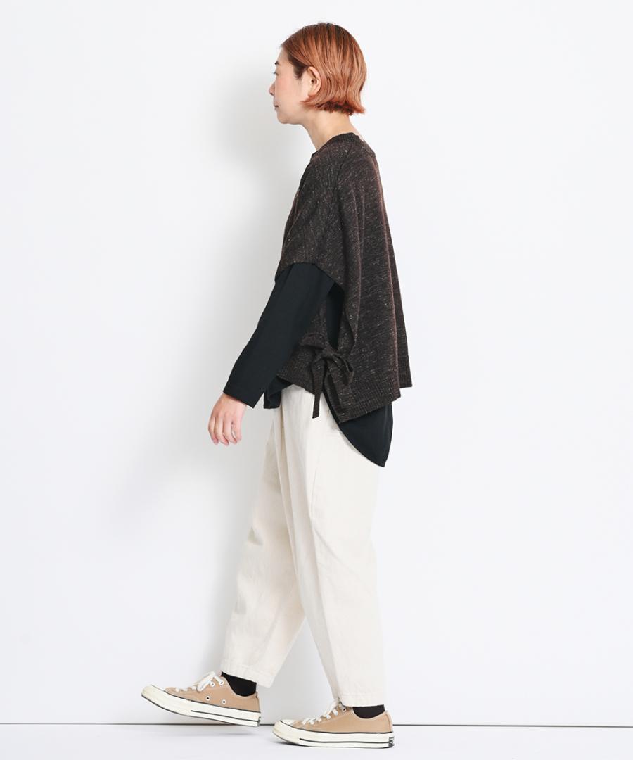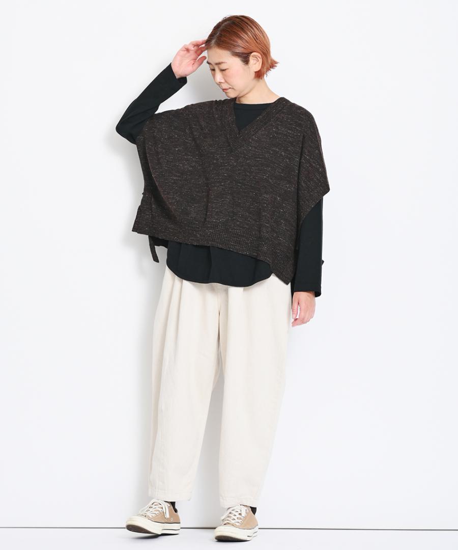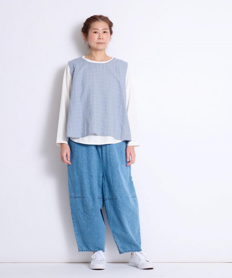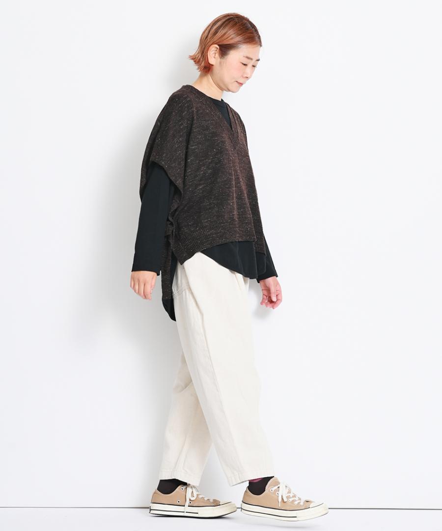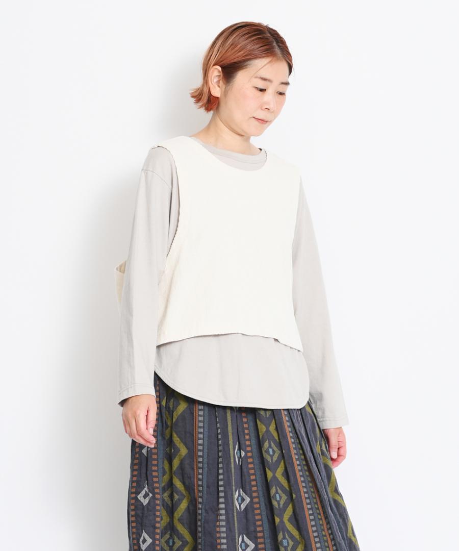 スイッチシーズンには1枚で、ベストやニットなど重ね着時にはラウンド裾が程よい抜け感を加えてくれますよ。