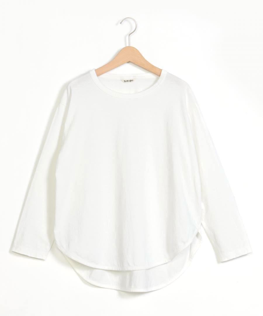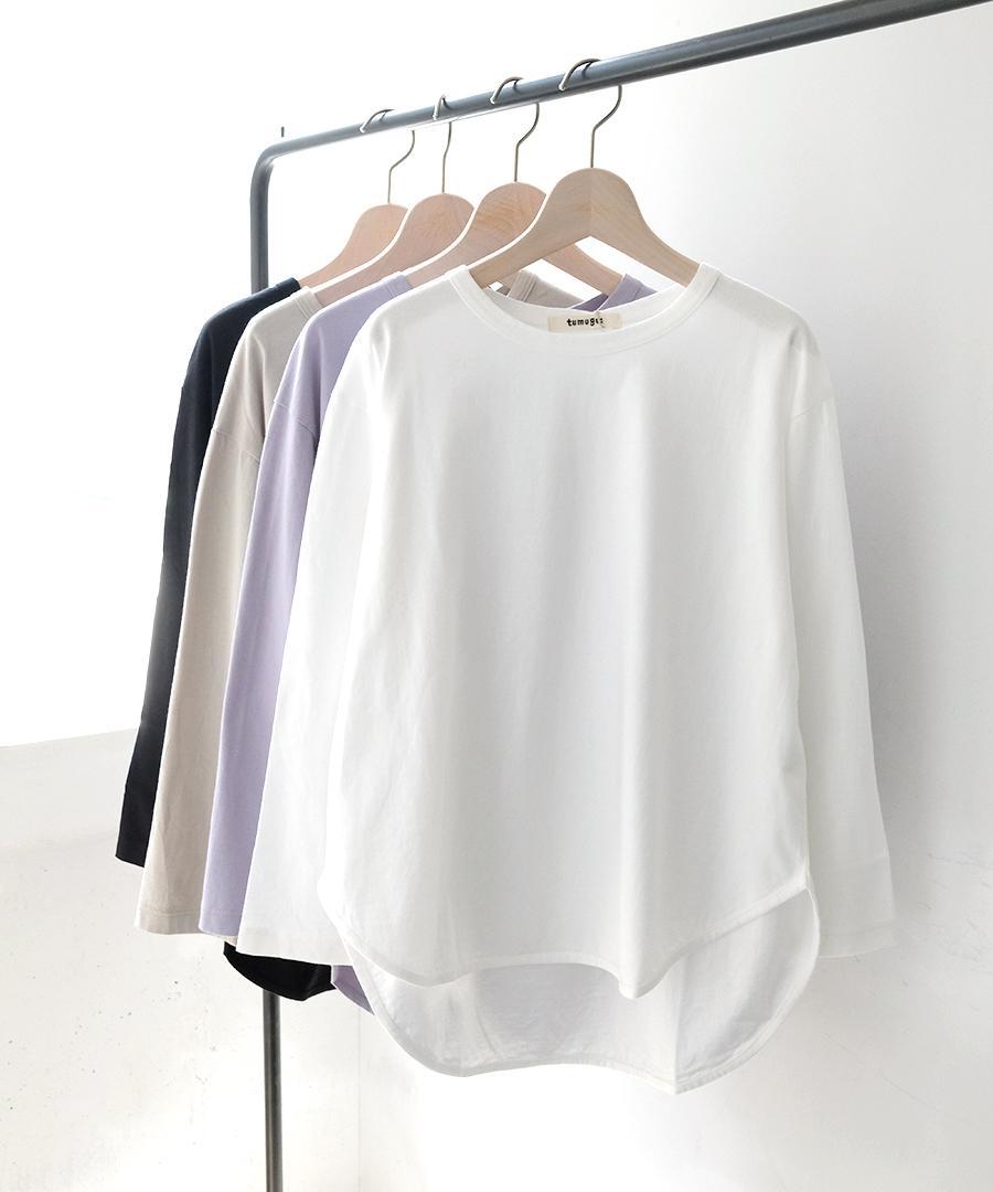 デイリーユースにぴったりでスタイリングしやすい、tumugu:定番のコットン100%長袖カットソー。