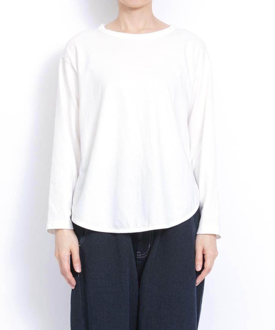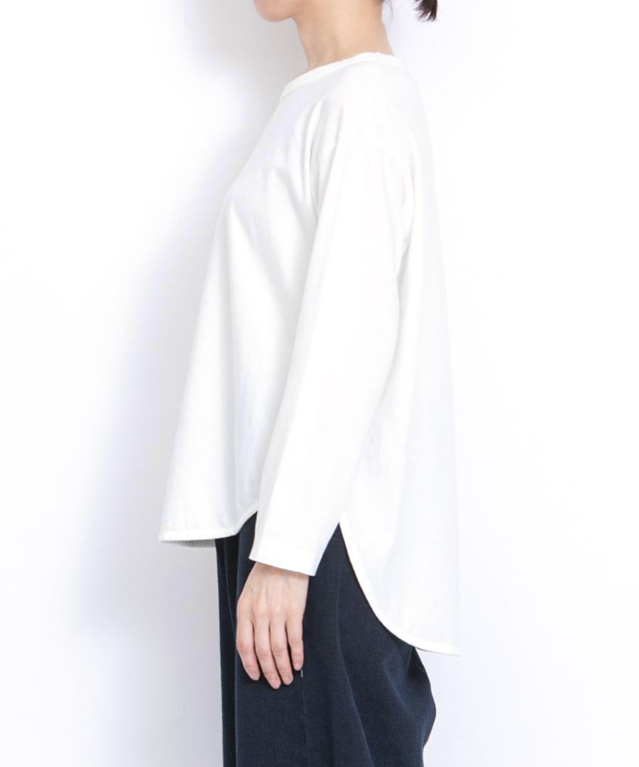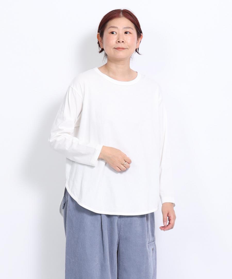 レイヤードコーデには欠かせないラウンド裾がポイントのロンTです。