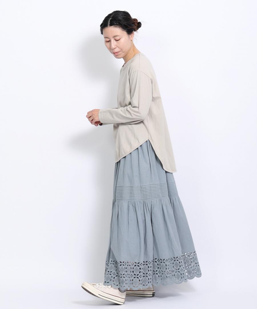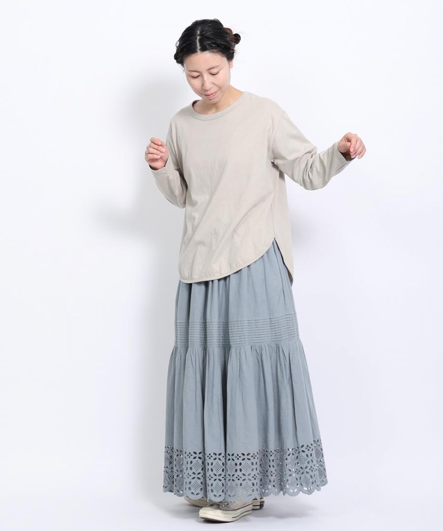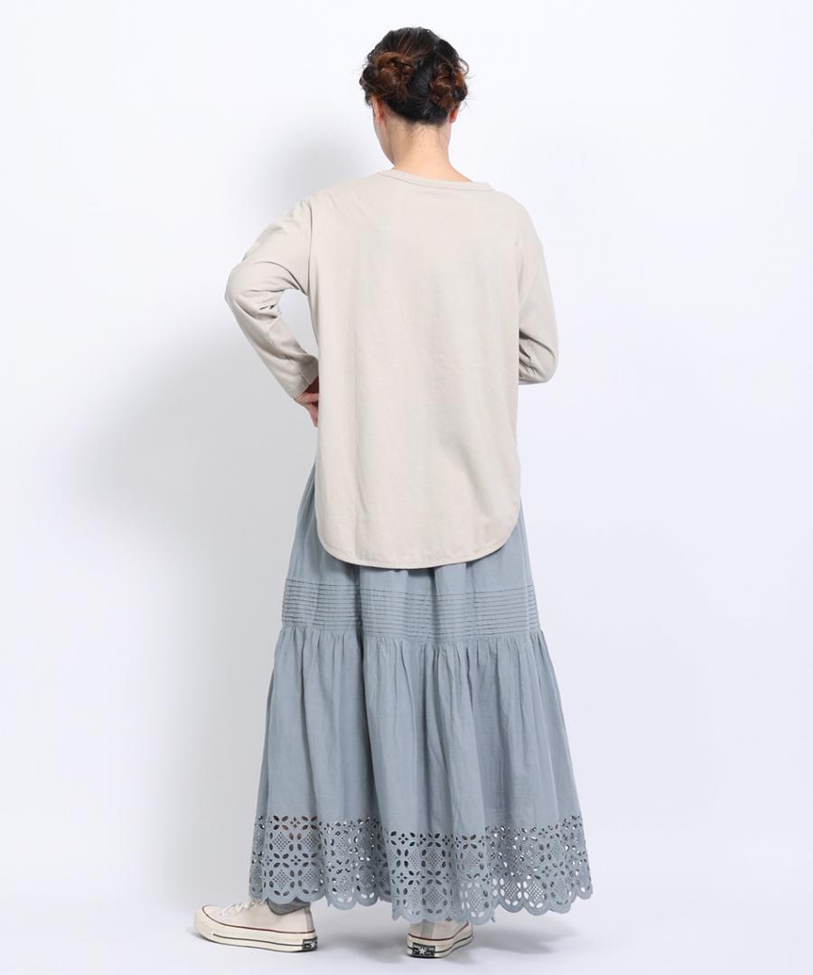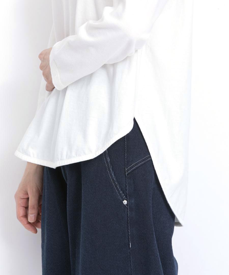 レイヤードコーデには欠かせないラウンド裾がポイントのロンTです。