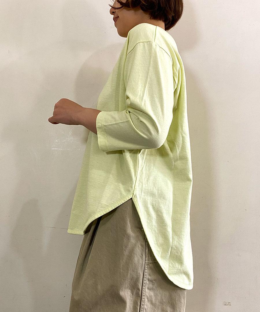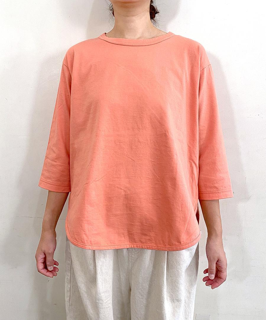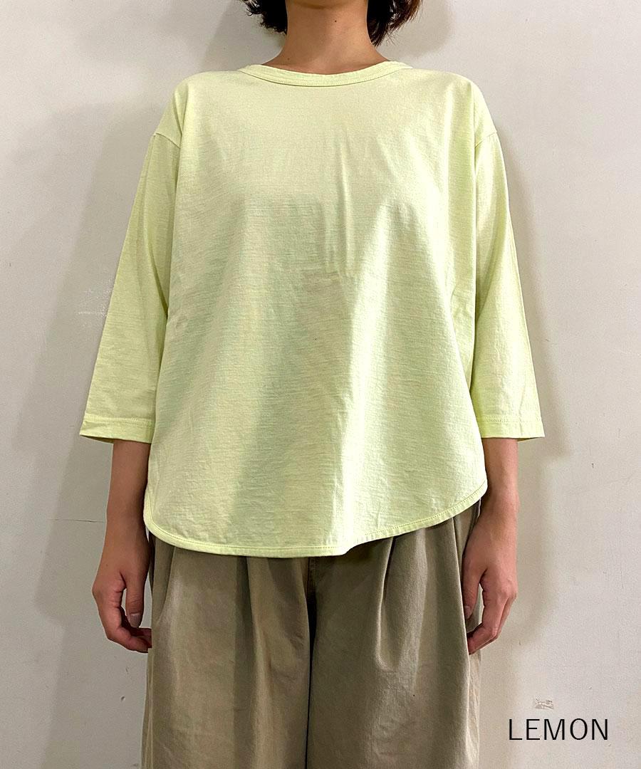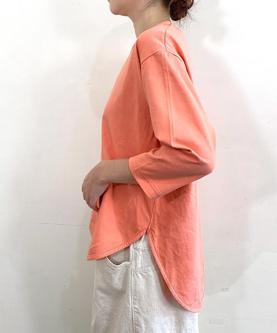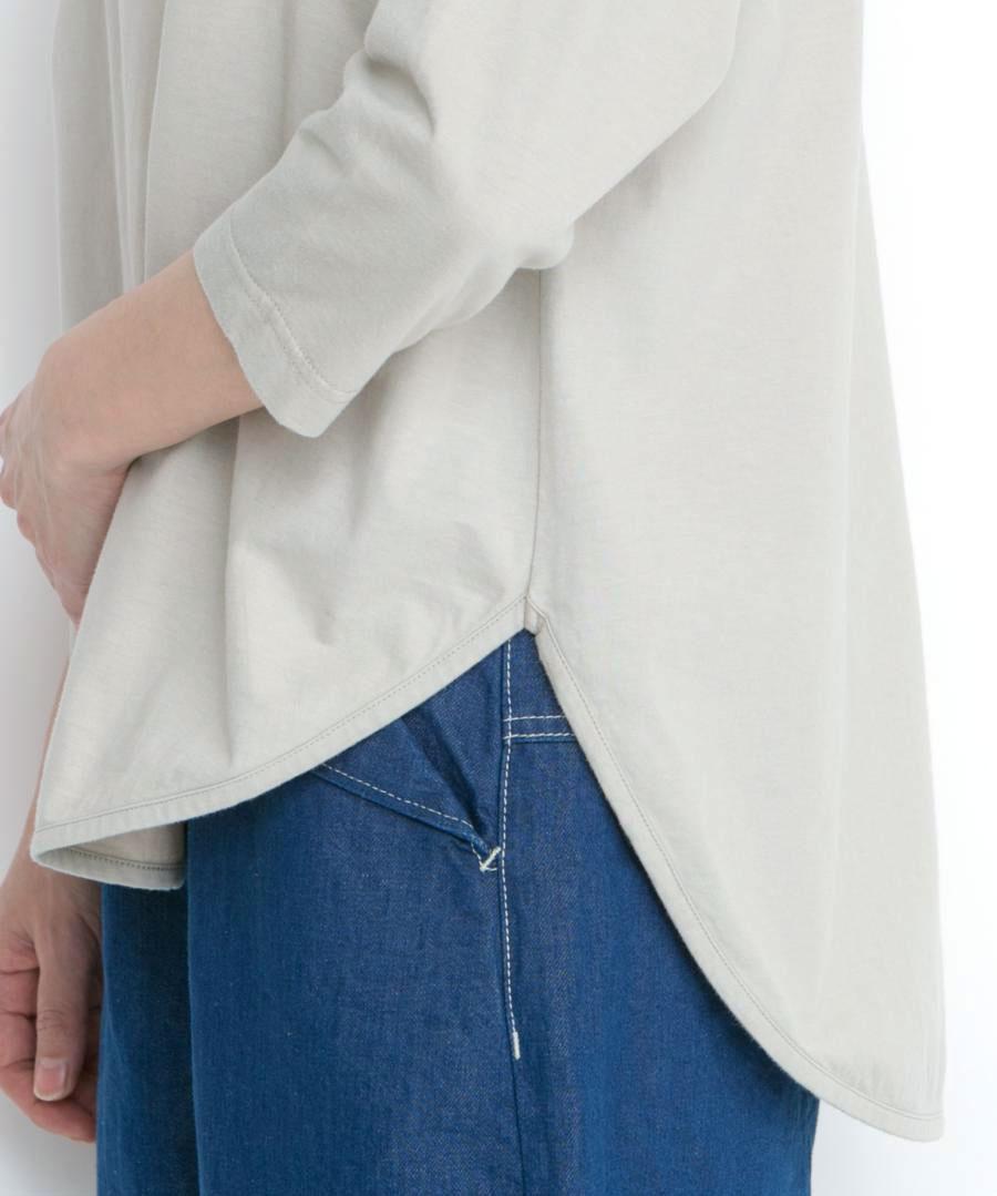 綿100%素材のさらりと滑らかな肌触りのスープレコットン天竺を使用したロング7分袖Tシャツ。