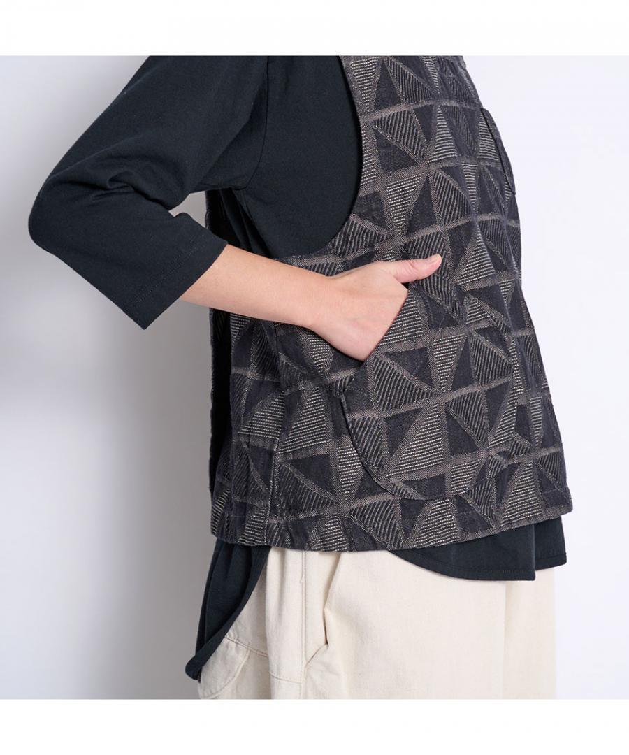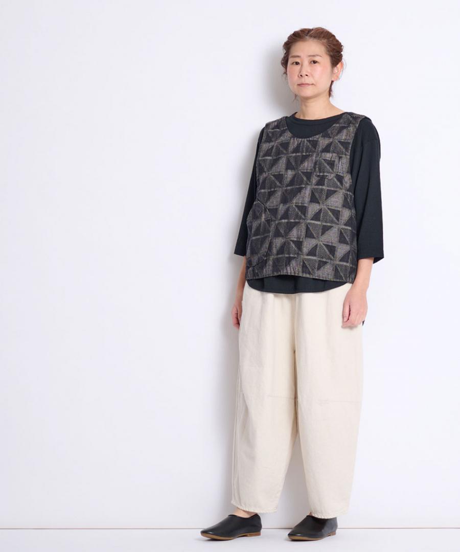 程よく肉感のあるしっかりとした風合い、表に出した特にアクセントとなる丸みのあるヘムライン(裾の形)も特徴となります。