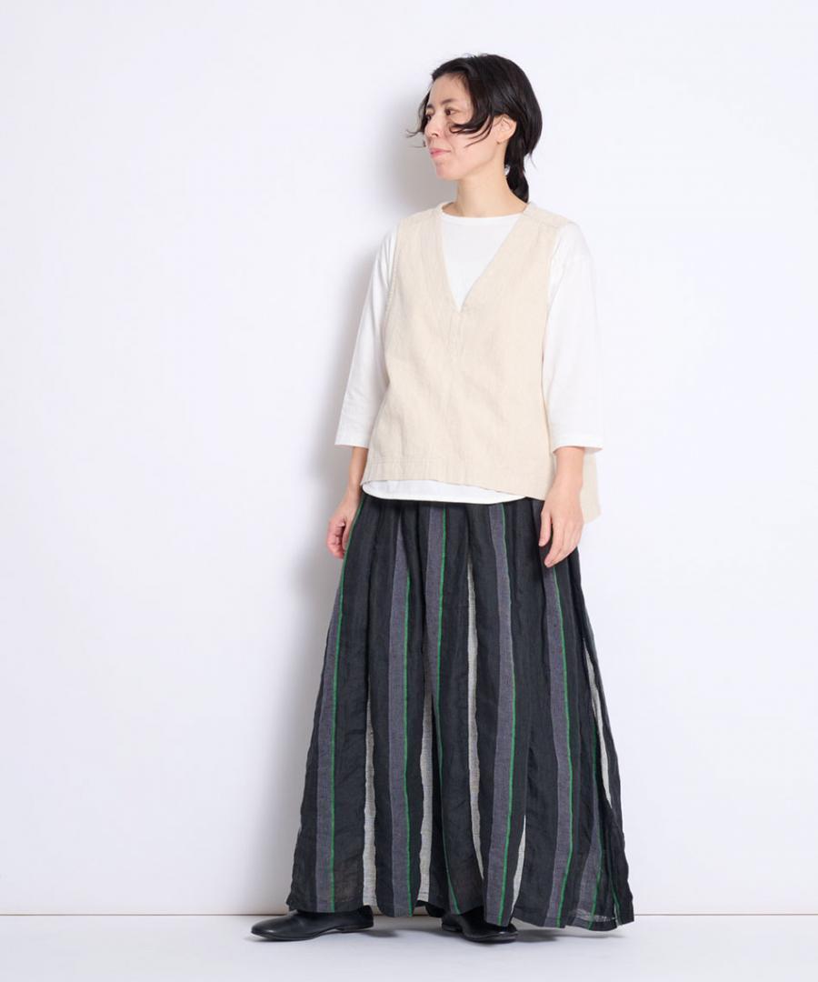 春夏シーズンのトップスを主役にした着こなしはもちろん、秋冬シーズンにはインナーとして、シーズンレスで着ることが出来るというのも魅力のアイテムです。