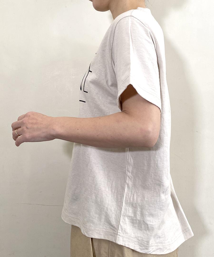 ナチュラルな風合いで肌触りが良く、通気性や吸湿性にも優れているラフィ天竺で仕立てたプリントTシャツ。