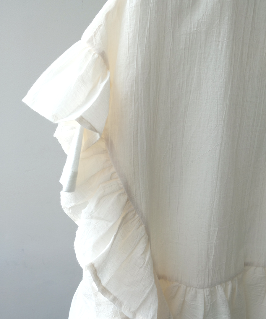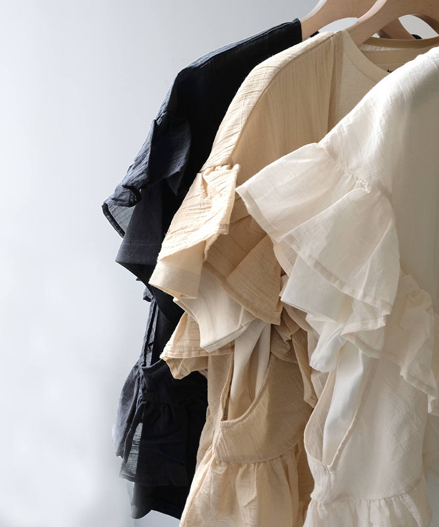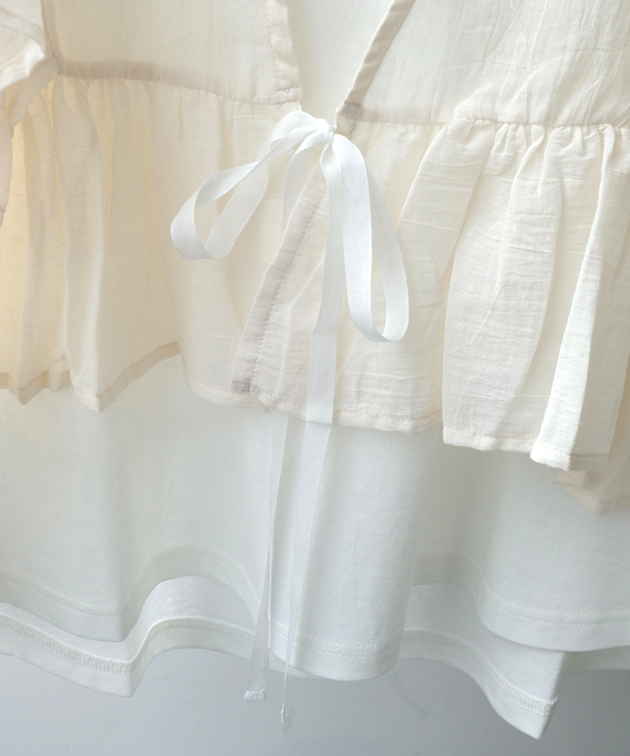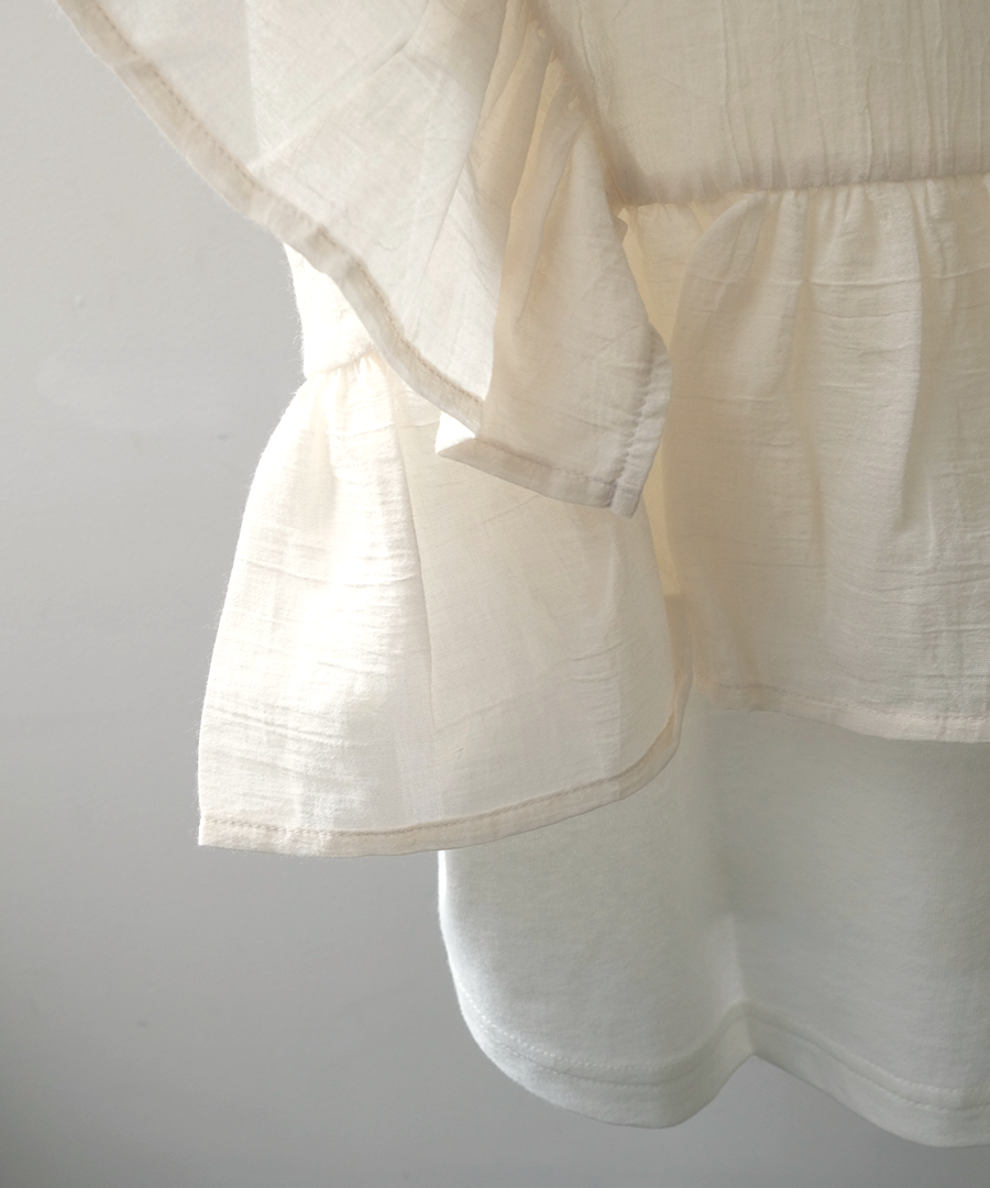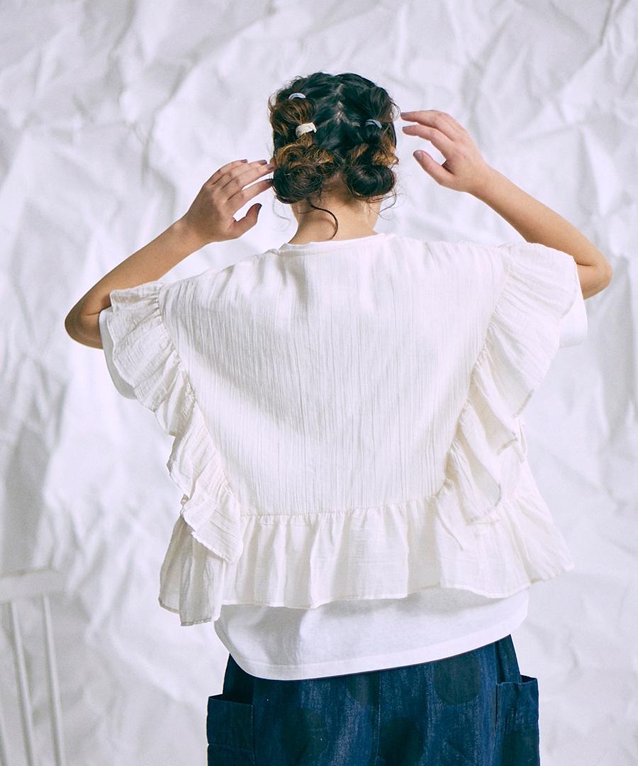 リサイクルコットン×コットンボイル 裾フリルプルオーバー