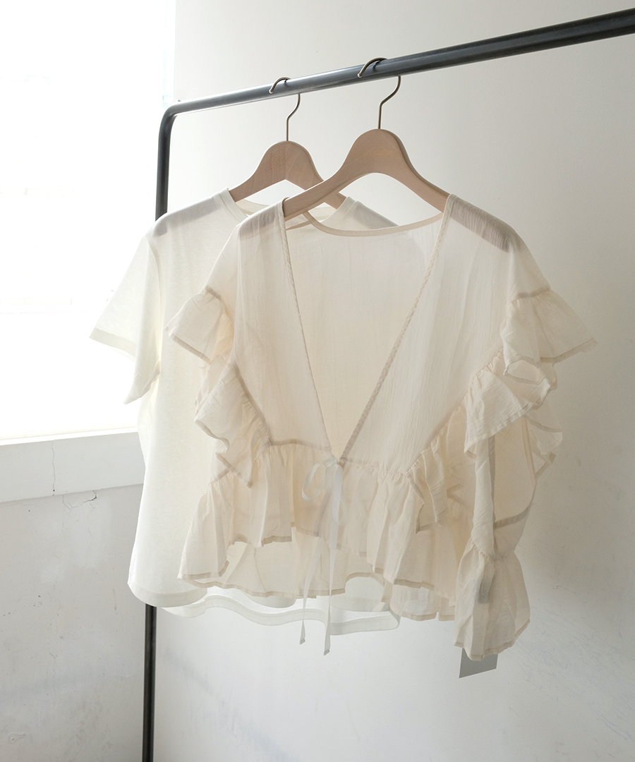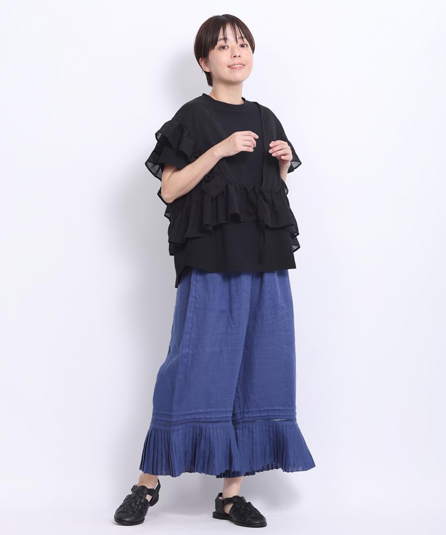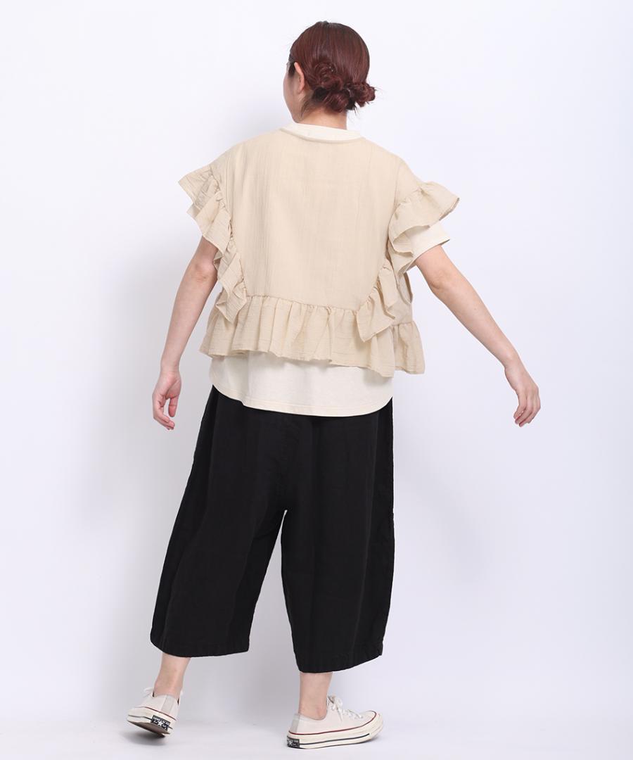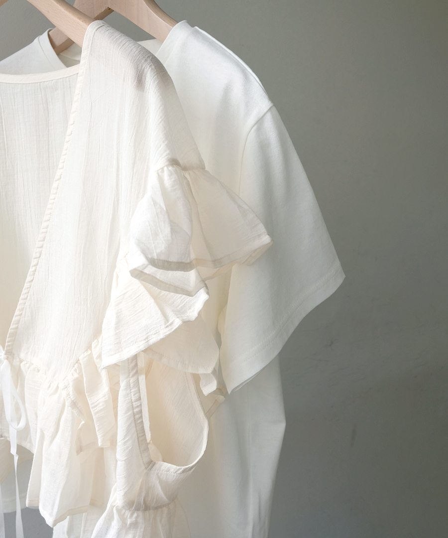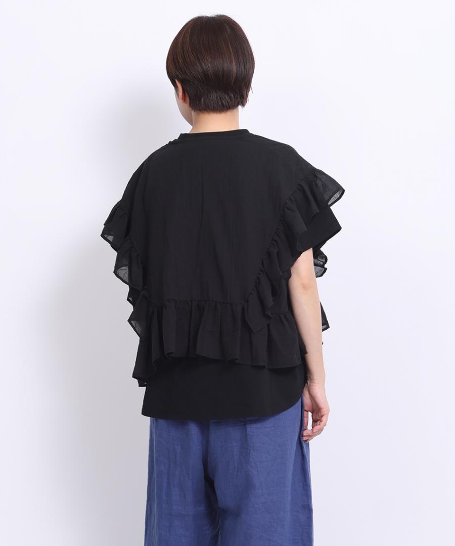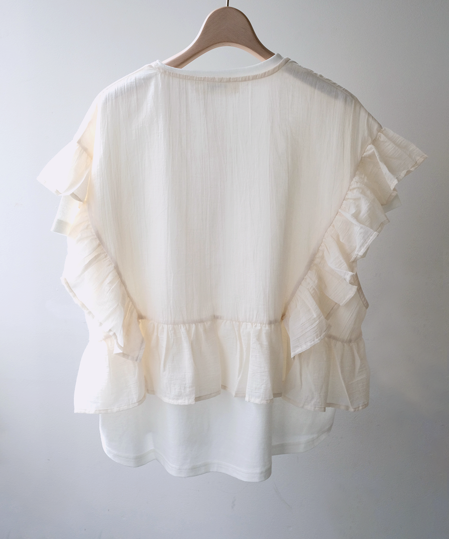 リサイクルコットン×コットンボイル 裾フリルプルオーバー