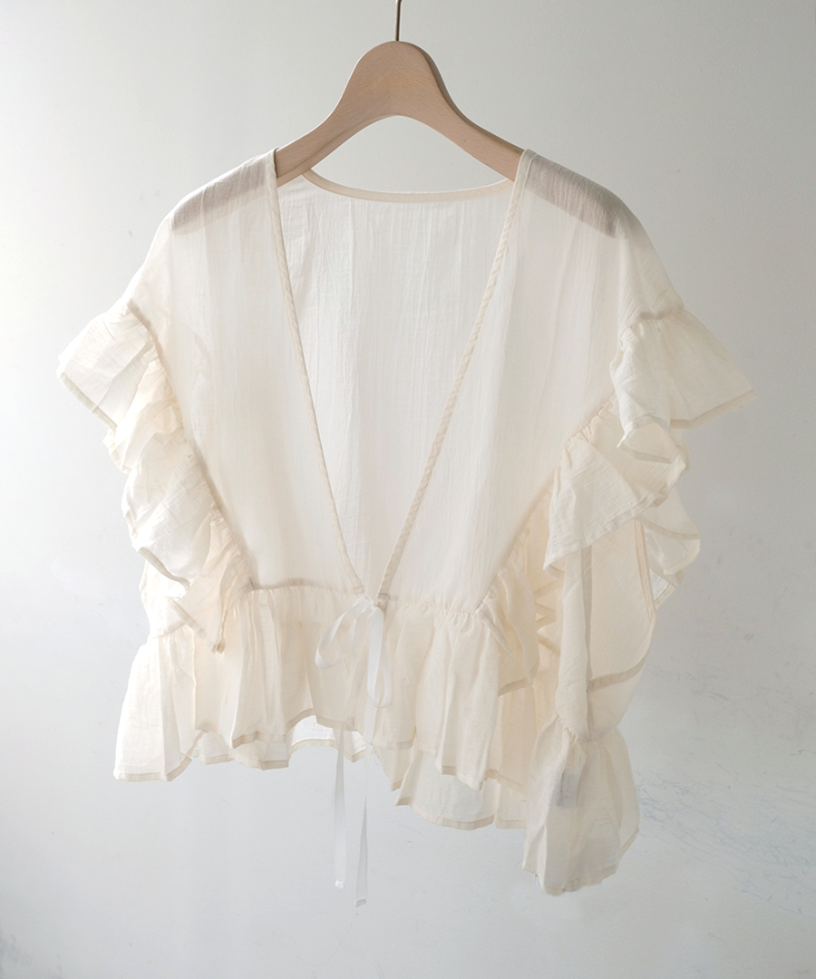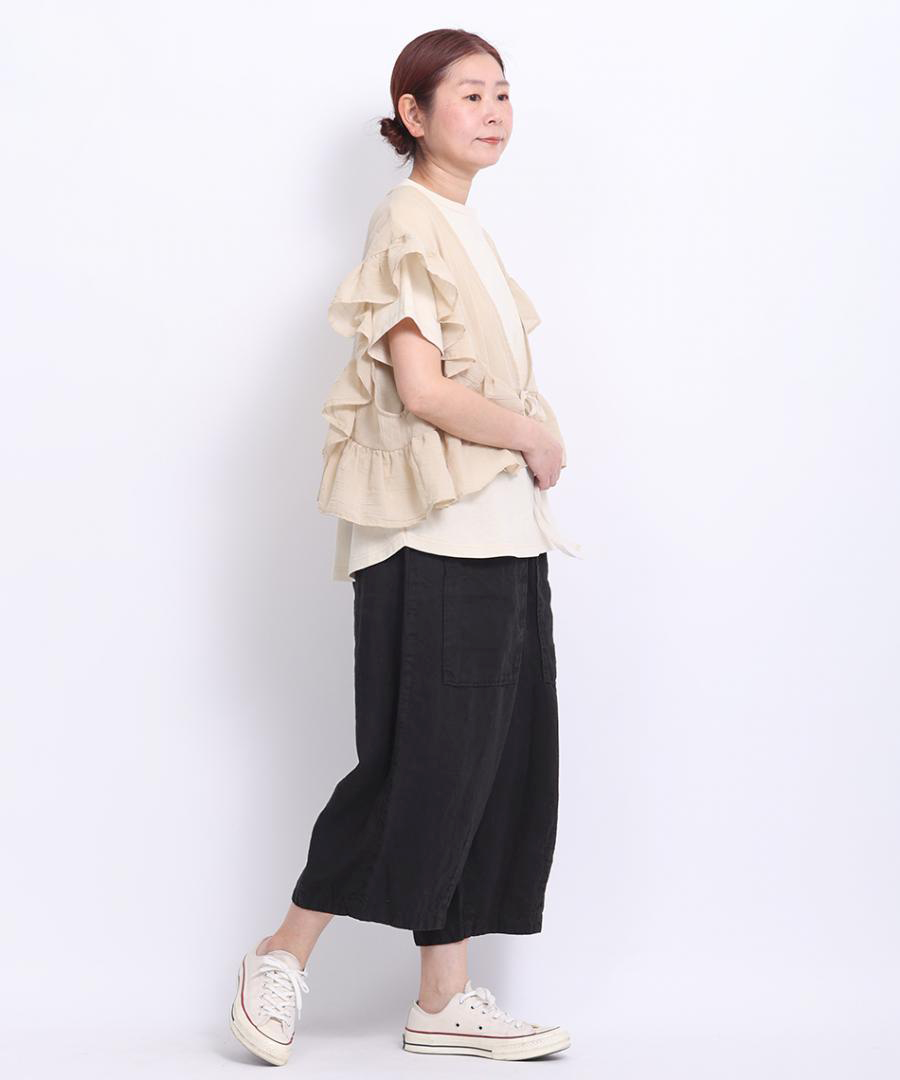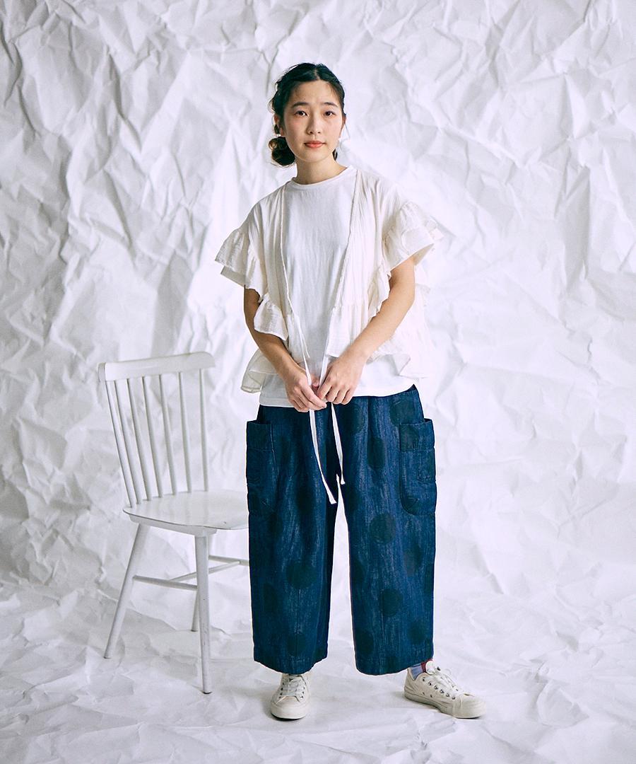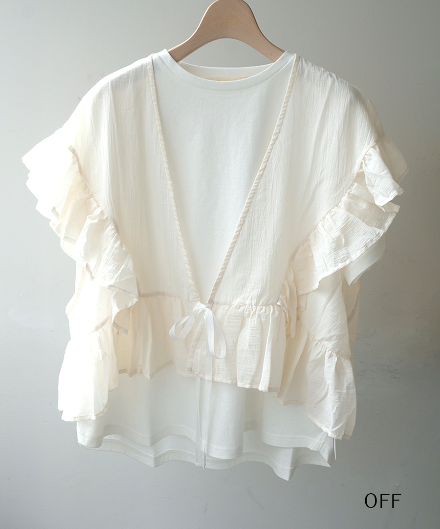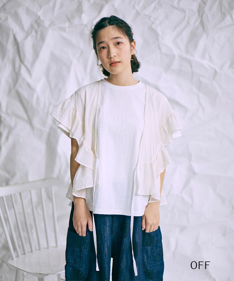 リサイクルコットン×コットンボイル 裾フリルプルオーバー