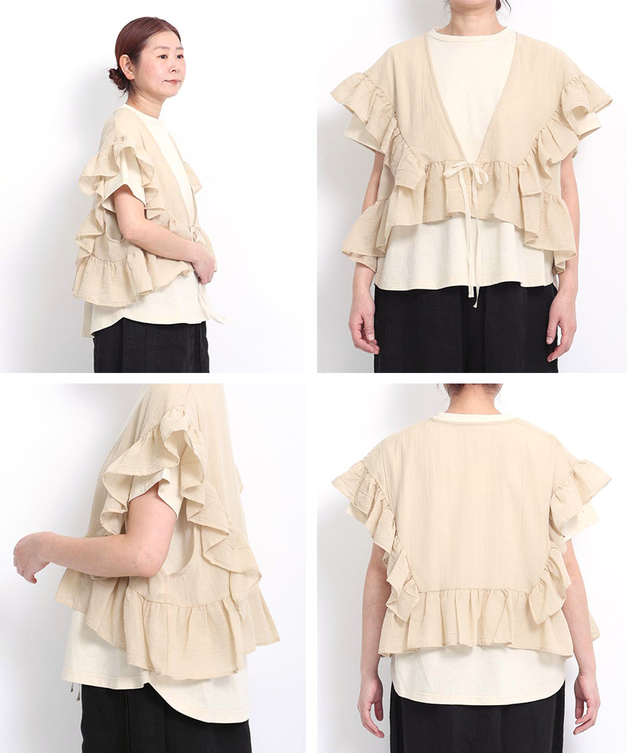 フェミニンで着回し力抜群のTシャツとベストのレイヤードアイテム。