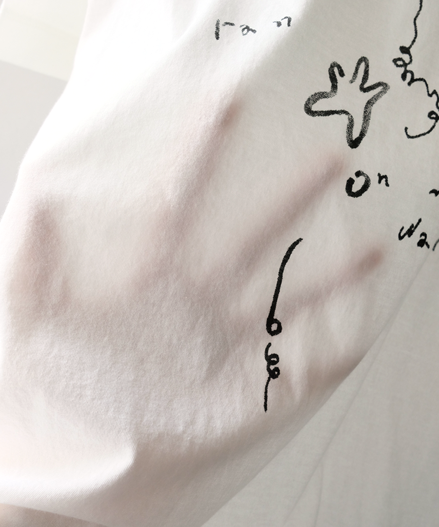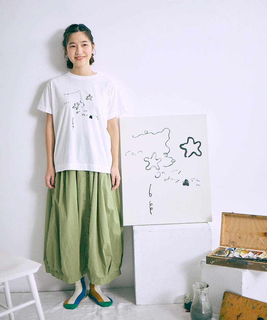 アーティストのゆりなさんにイラストを描いていただき、薄手のハイゲージ天竺にプリントしました。
