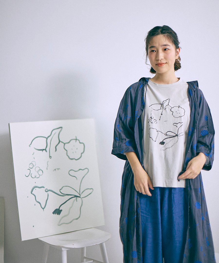 アーティストのゆりなさんにイラストを描いていただき、薄手のハイゲージ天竺にプリントしました。