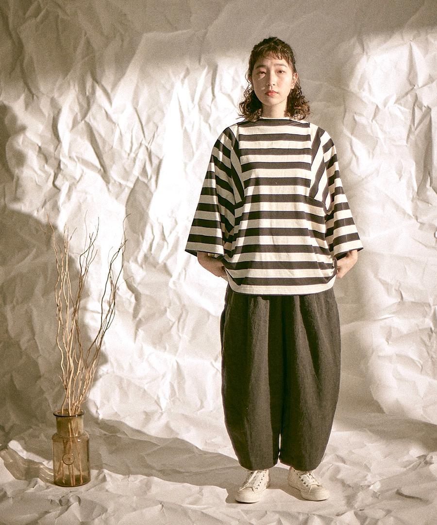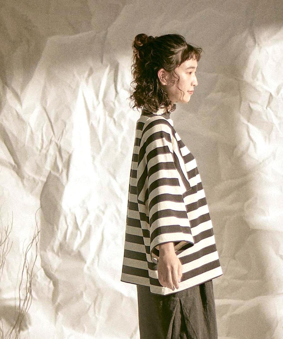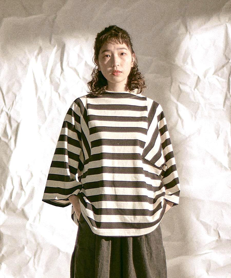 たっぷりとゆとりを持たせたシルエットで、ボーダーの切り替えがアクセント。