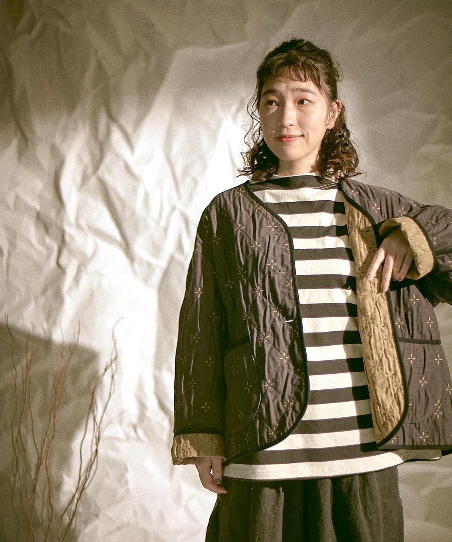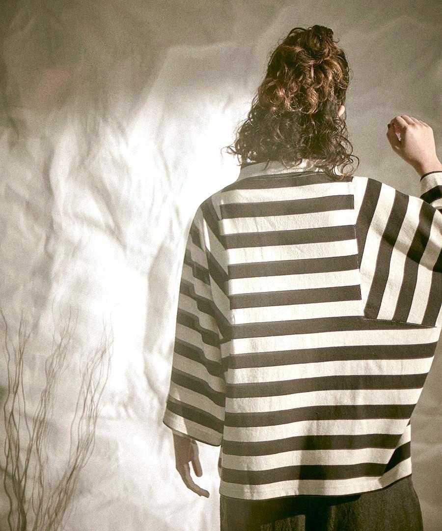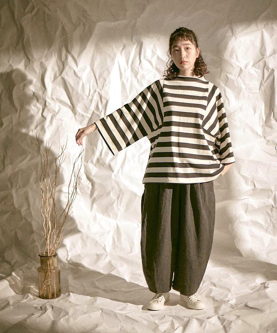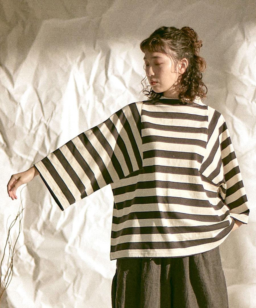 たっぷりとゆとりを持たせたシルエットで、ボーダーの切り替えがアクセント。