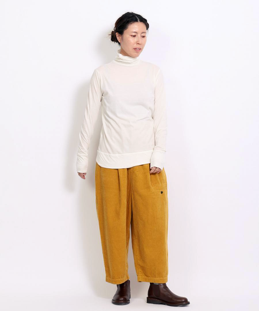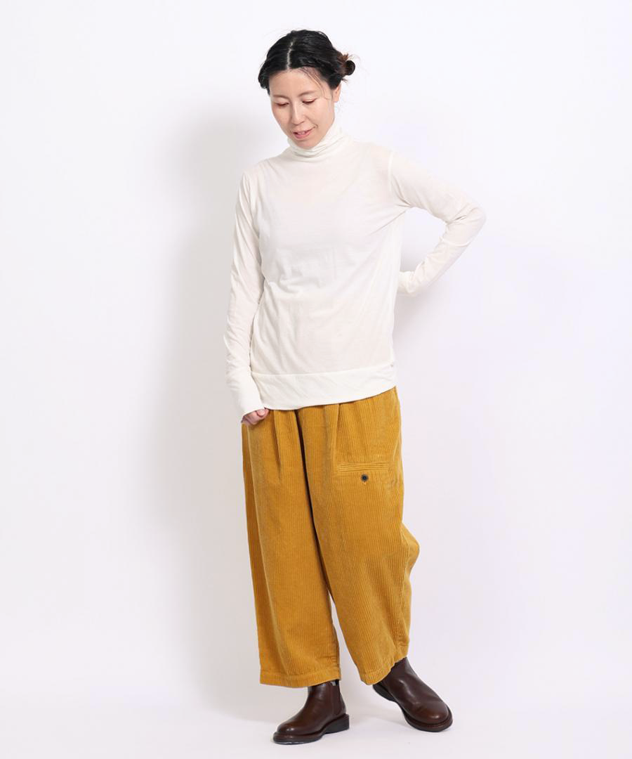 1枚でも重ね着でも着回し万能なおすすめタートルカットソーです。