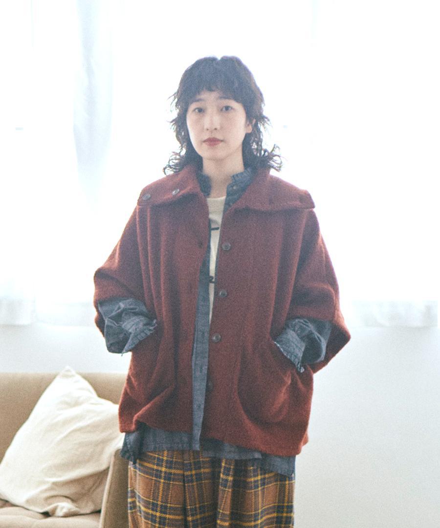 ウールアンゴラボア ポンチョジャケット