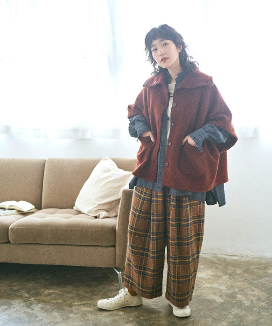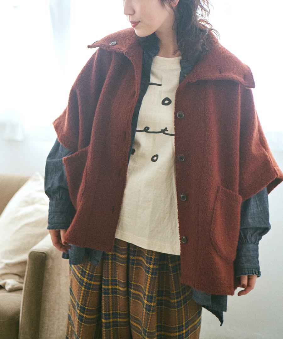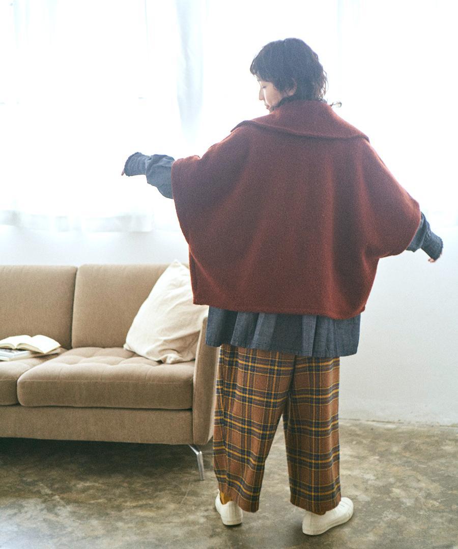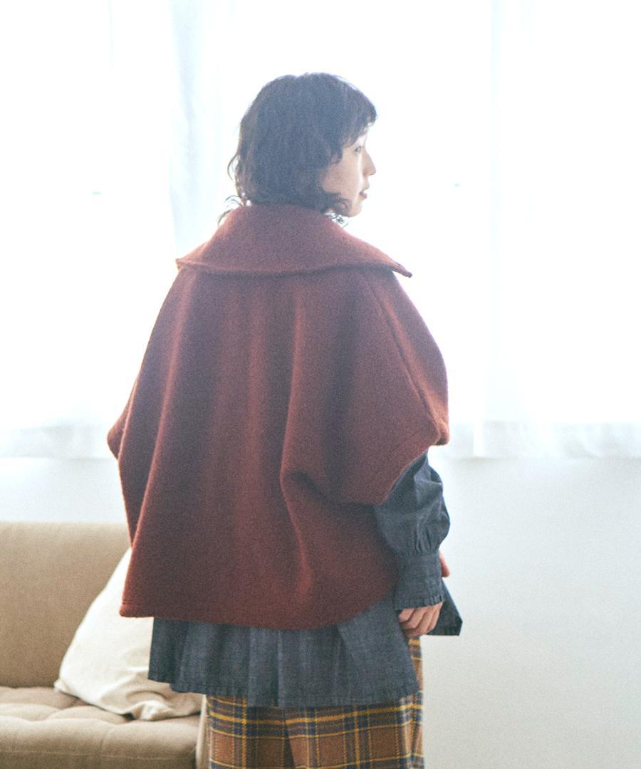 モコモコが可愛い、ウールアンゴラボア素材で仕立てたポンチョジャケット。
