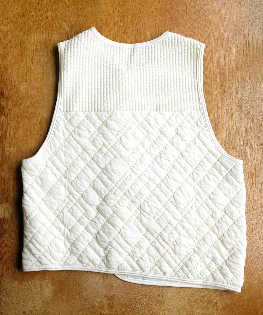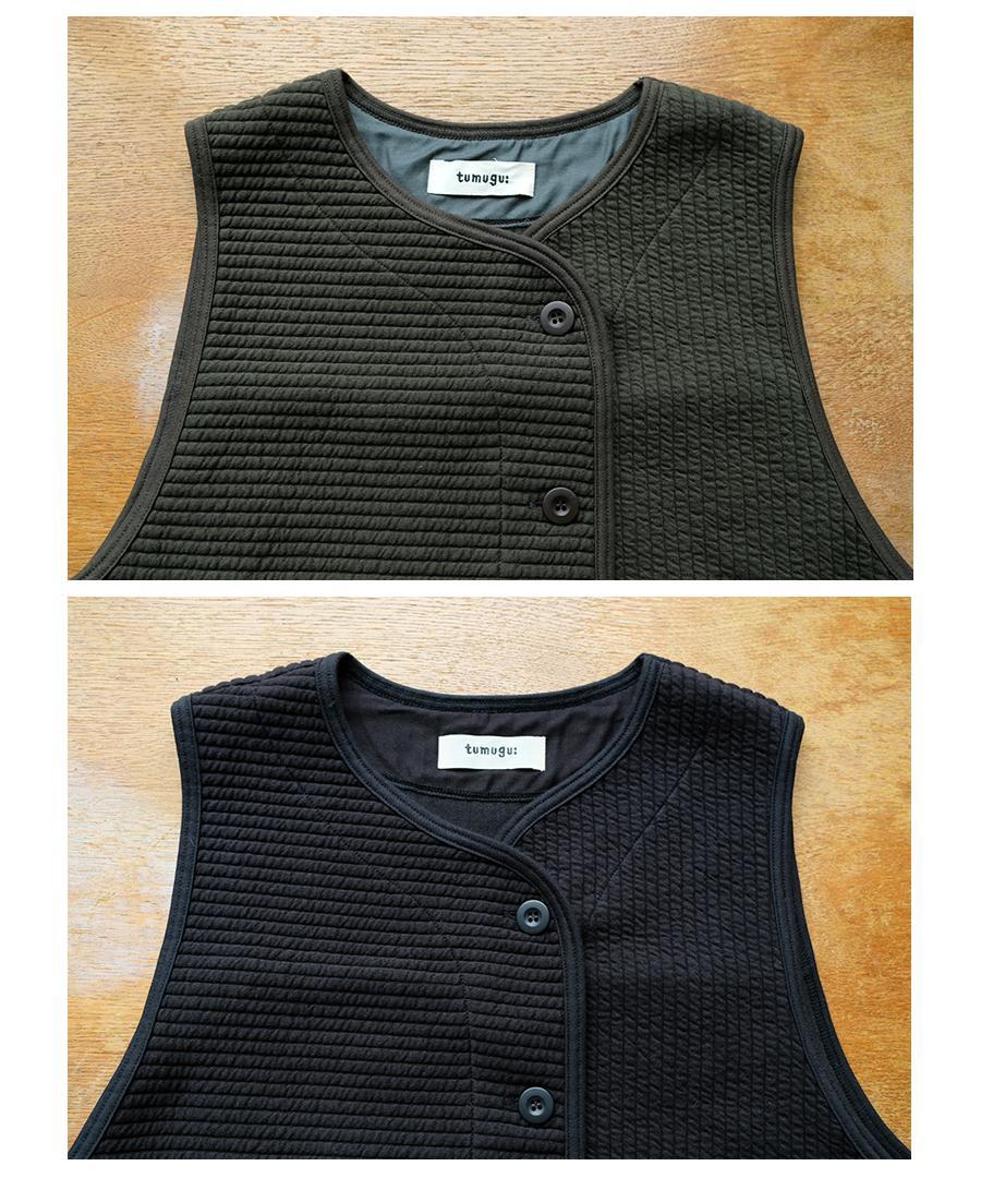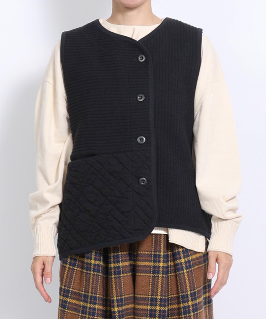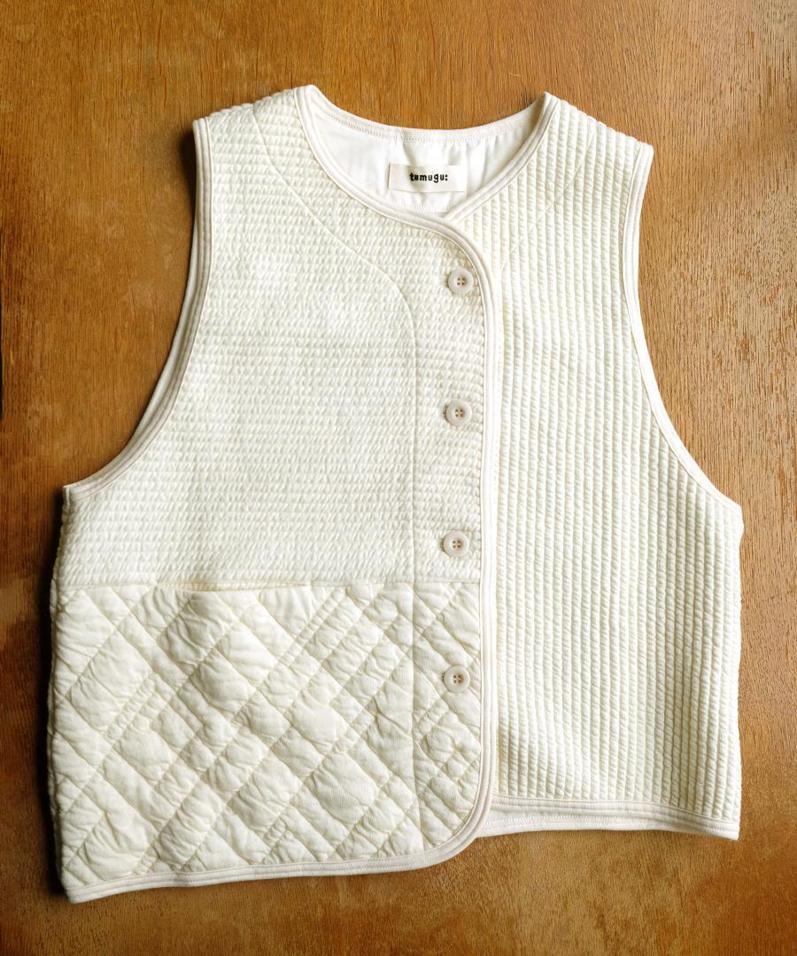 ストレッチキルト素材がとても着心地の良いアシンメトリーベスト。