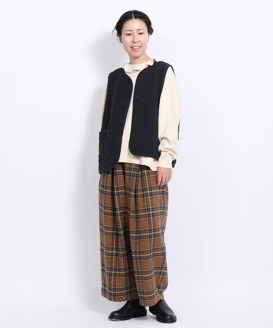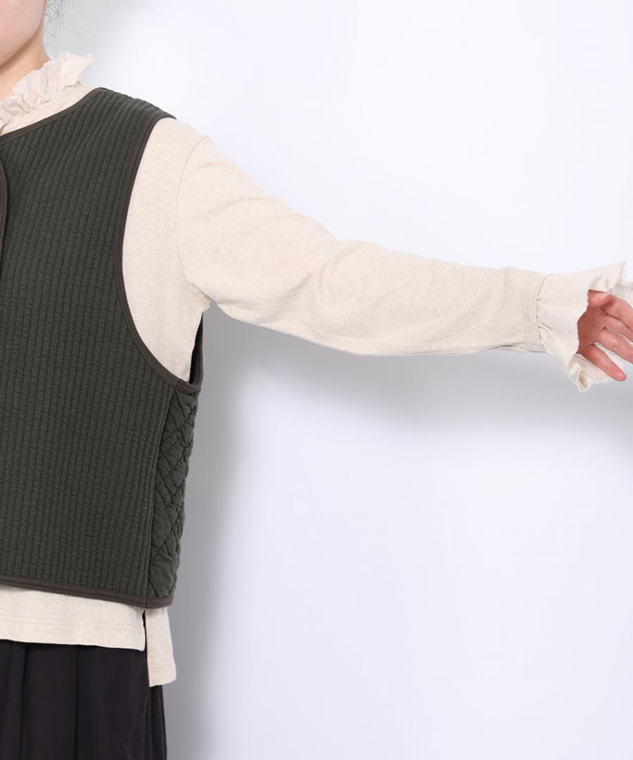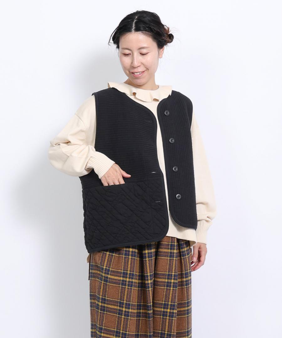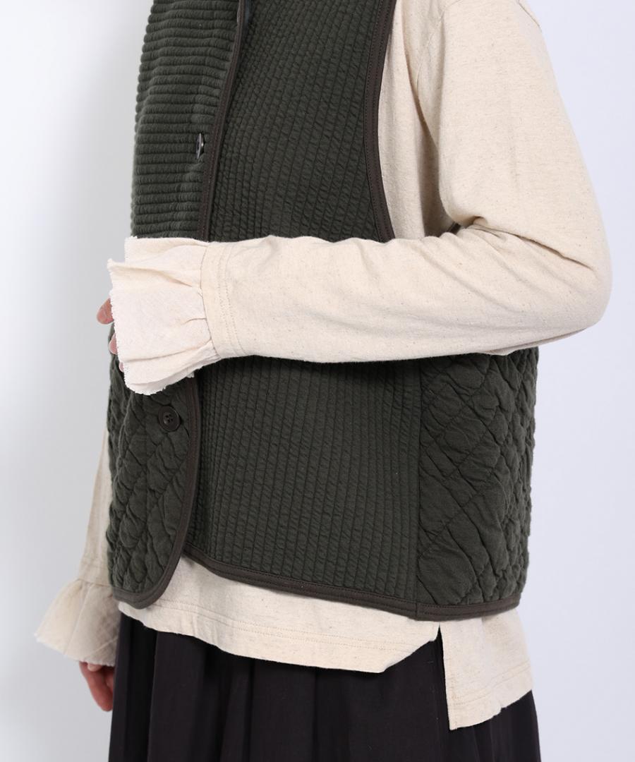 ストレッチキルト素材がとても着心地の良いアシンメトリーベスト。