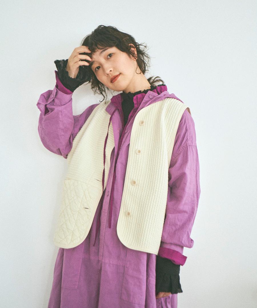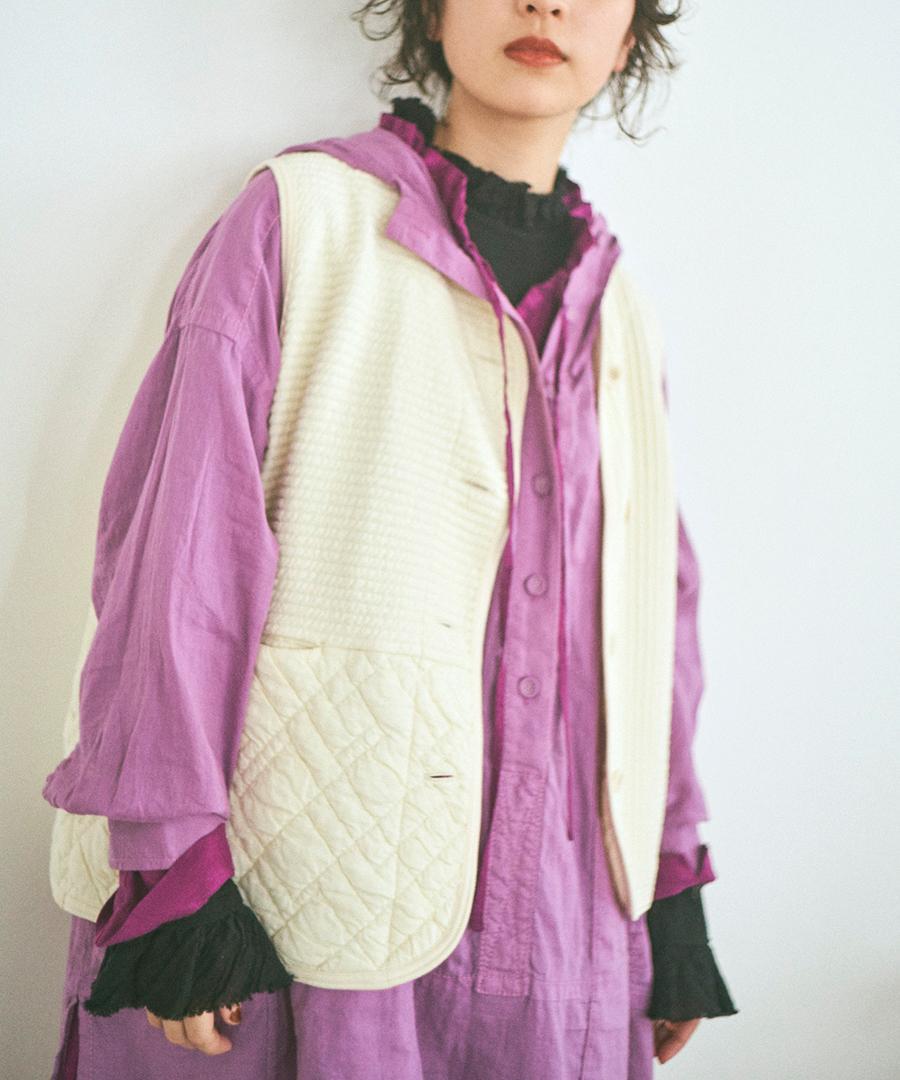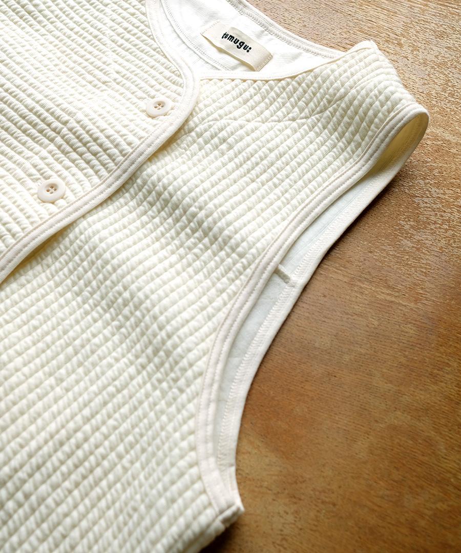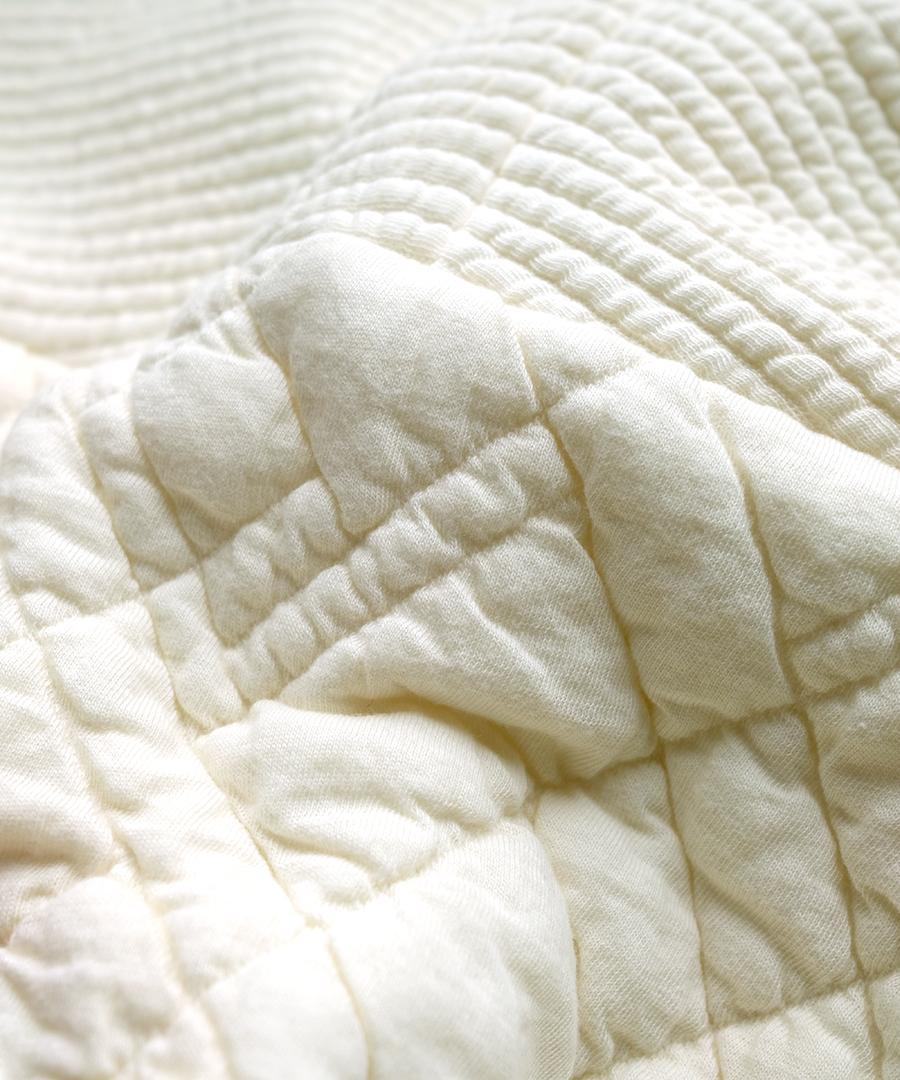 軽やかで暖かい中綿入りのキルティング生地を使用しています。