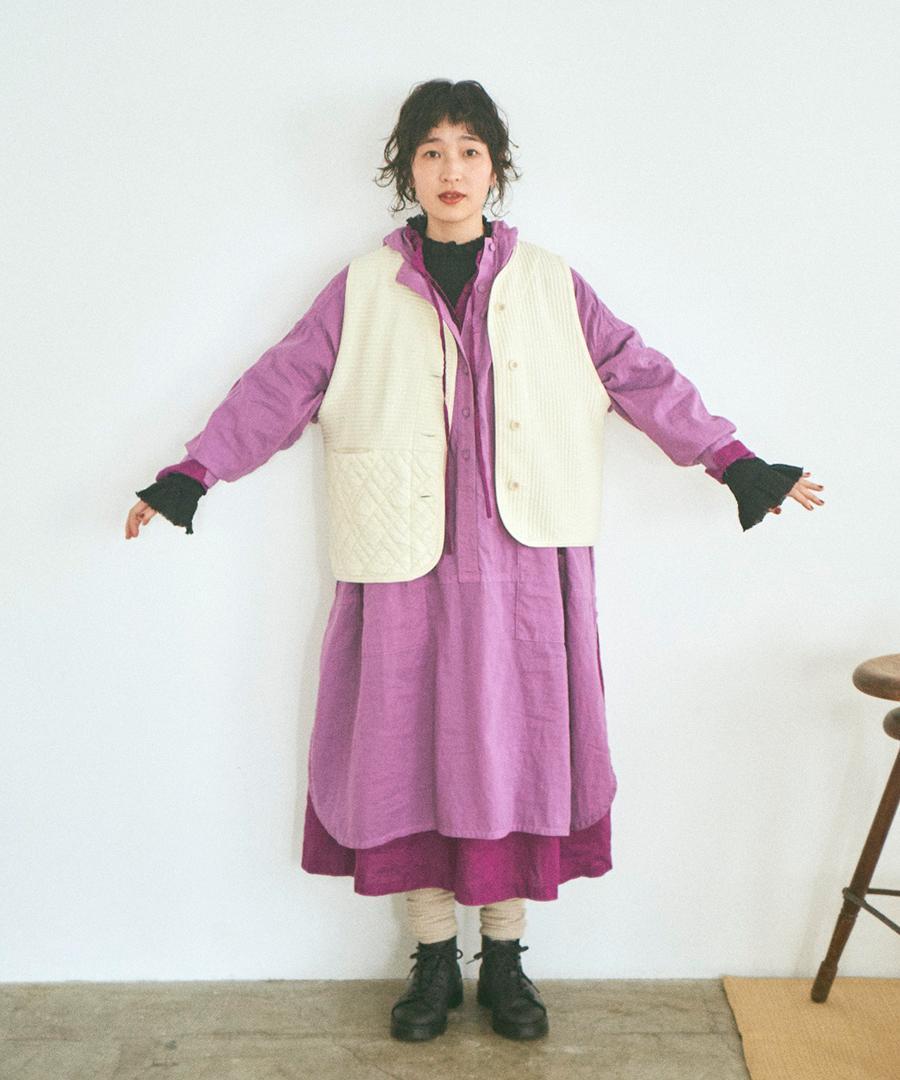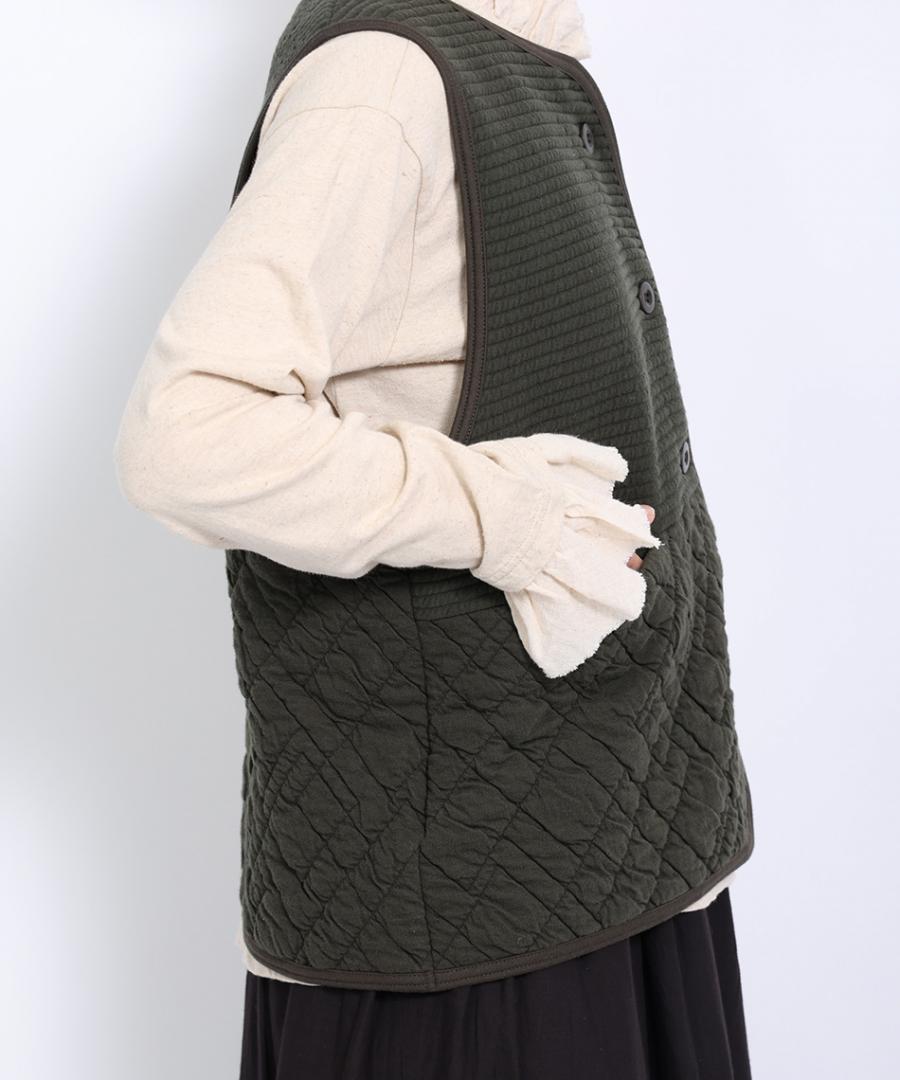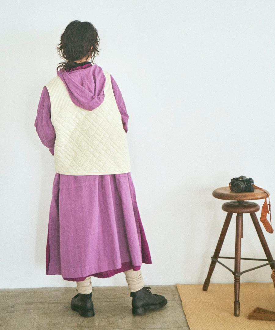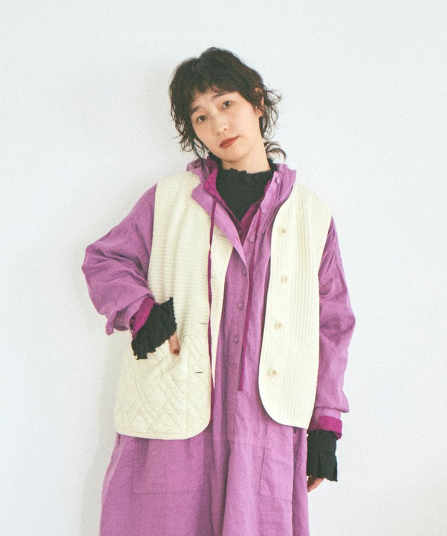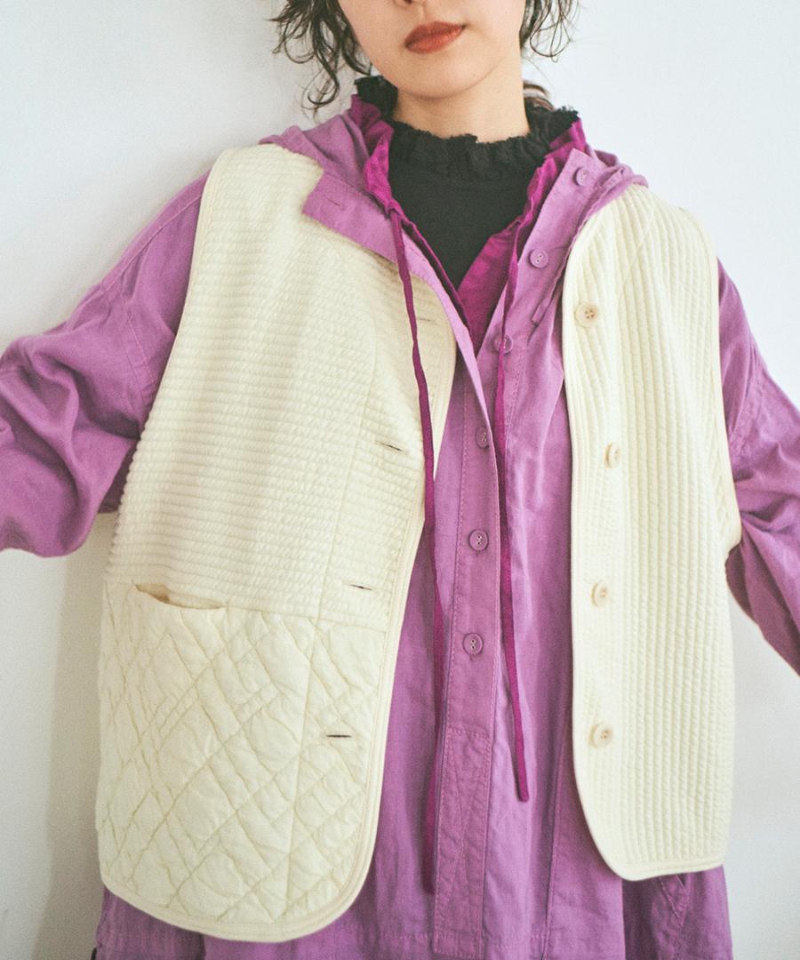 軽やかで暖かい中綿入りのキルティング生地を使用しています。