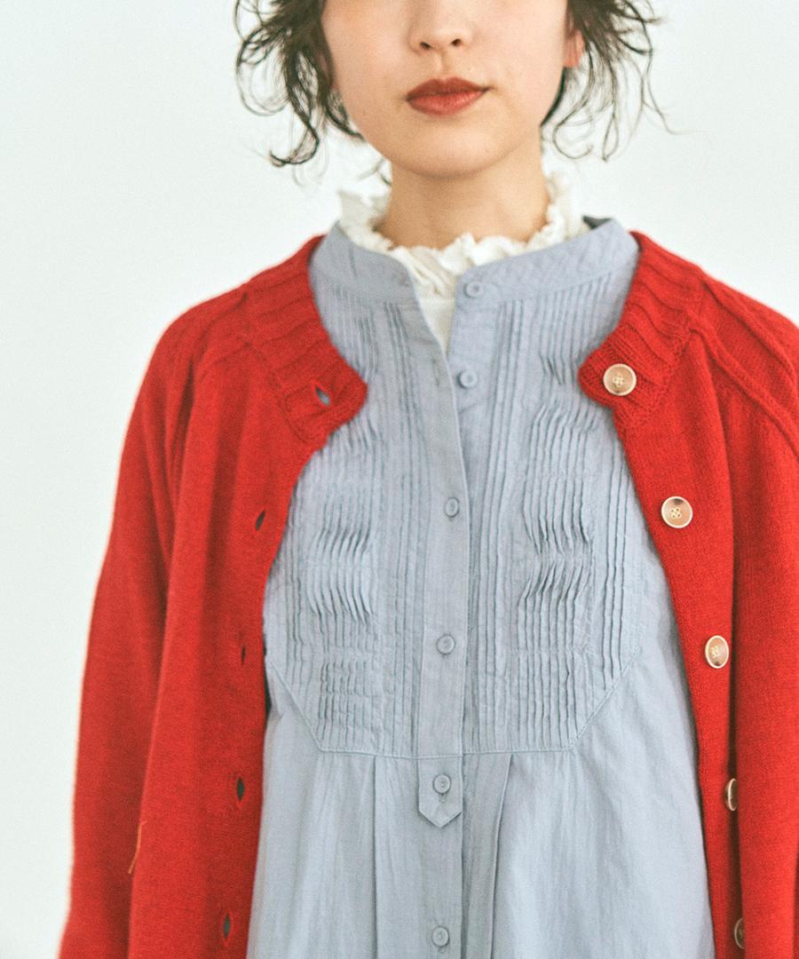 ニットやカーディガンの下にレイヤードすることで、ニュアンスのあるスタイルが完成☺