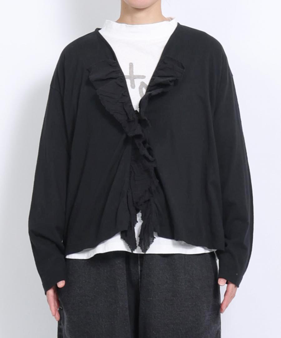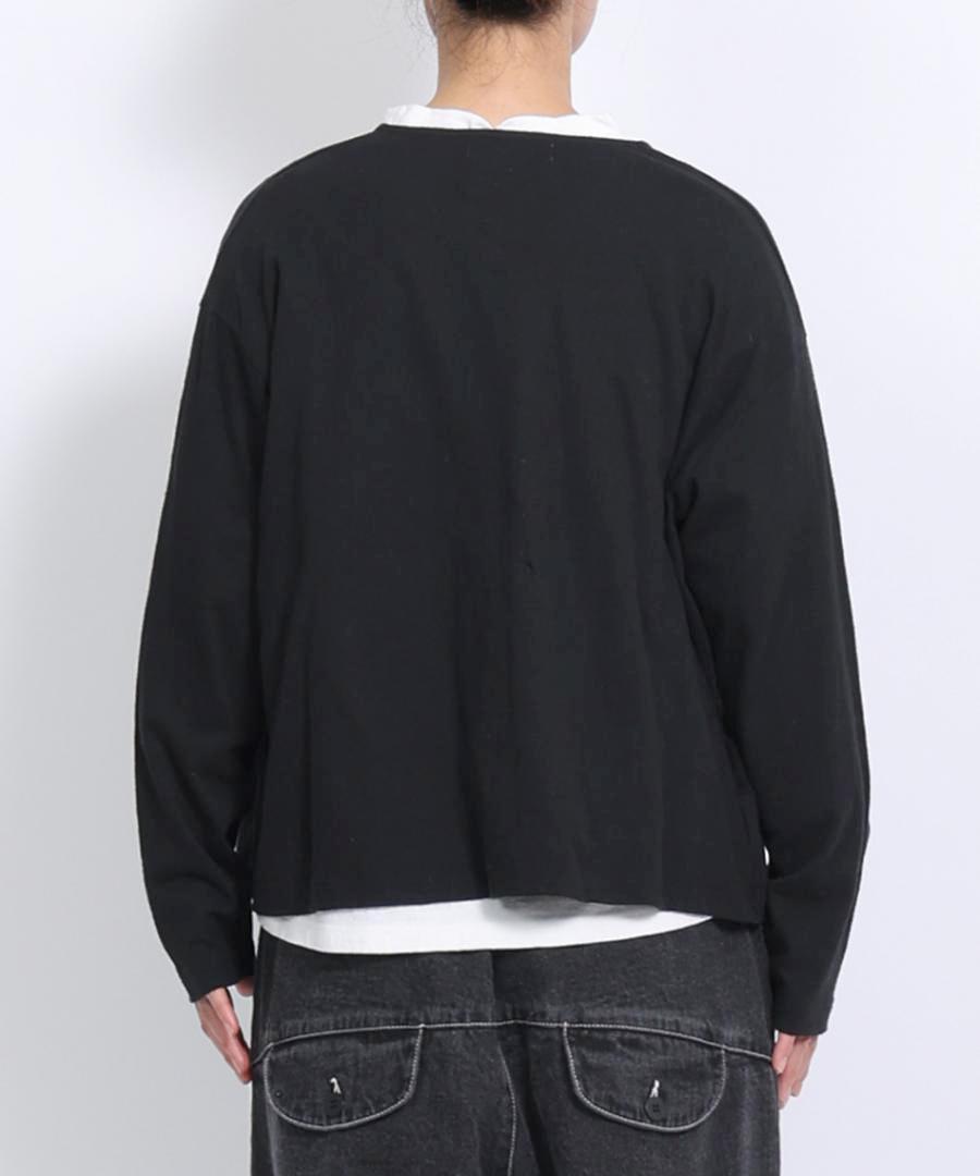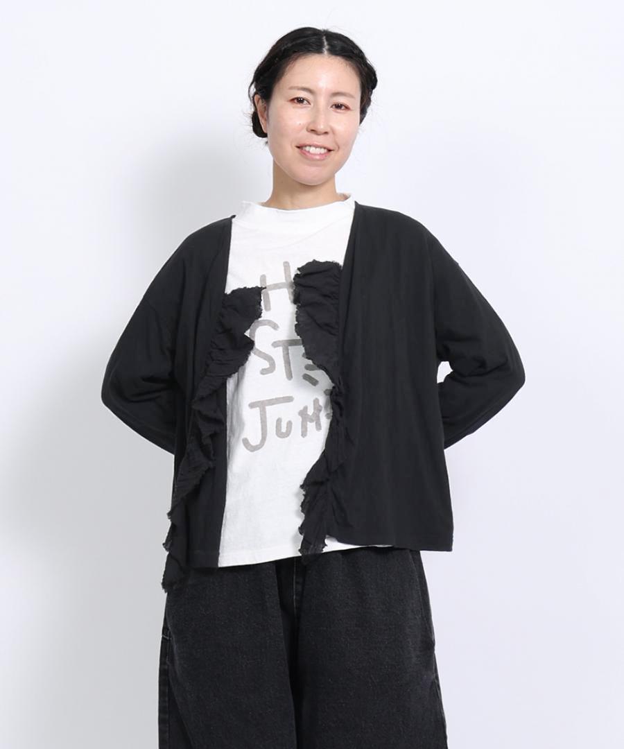 カットソー生地の薄手のカーディガンは季節の変わり目にも重宝するアイテムです。