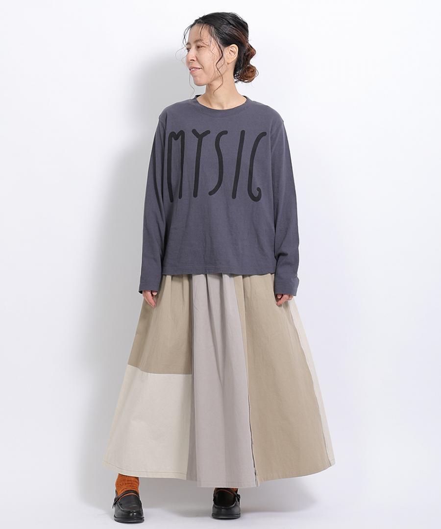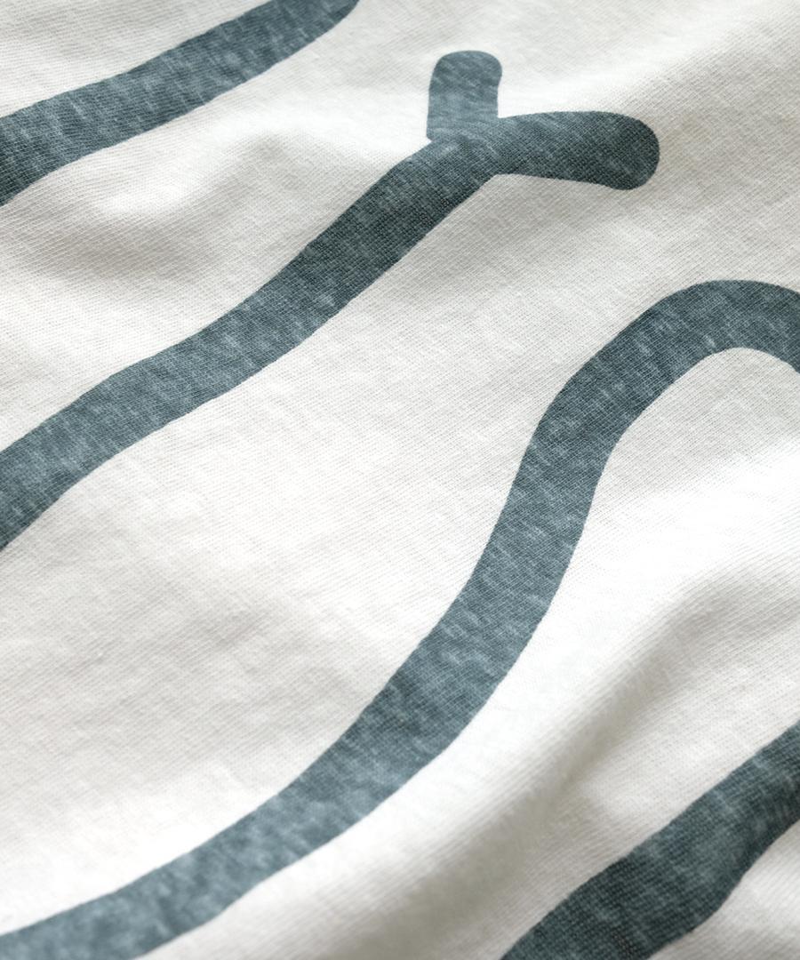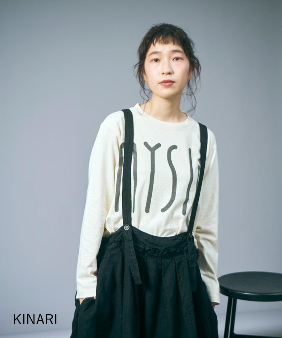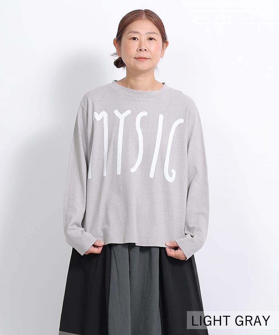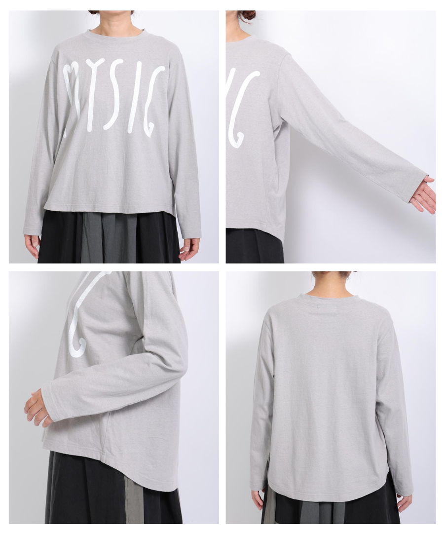 人気のラフィ天竺素材で仕立てたプリント長袖Tシャツ。