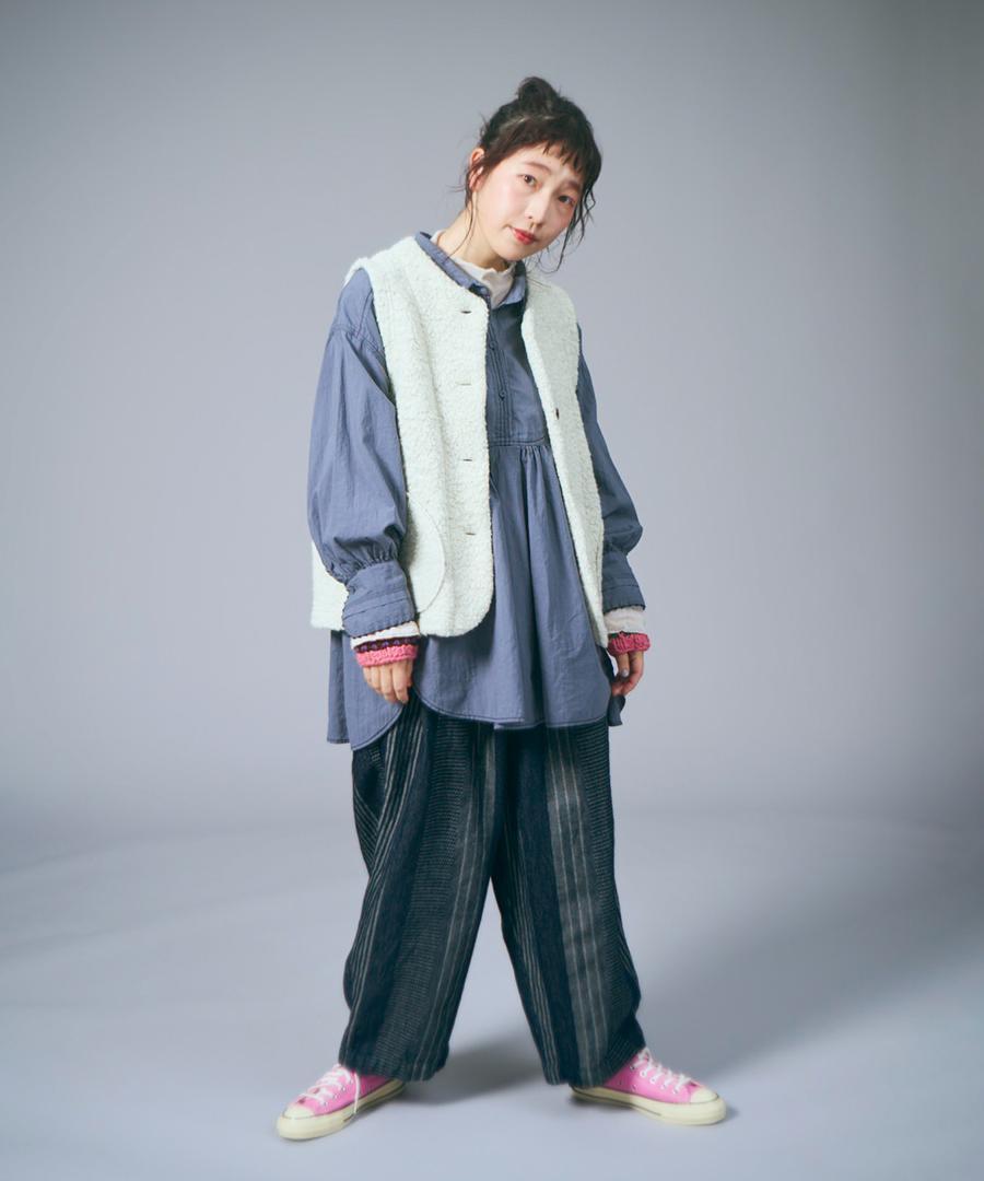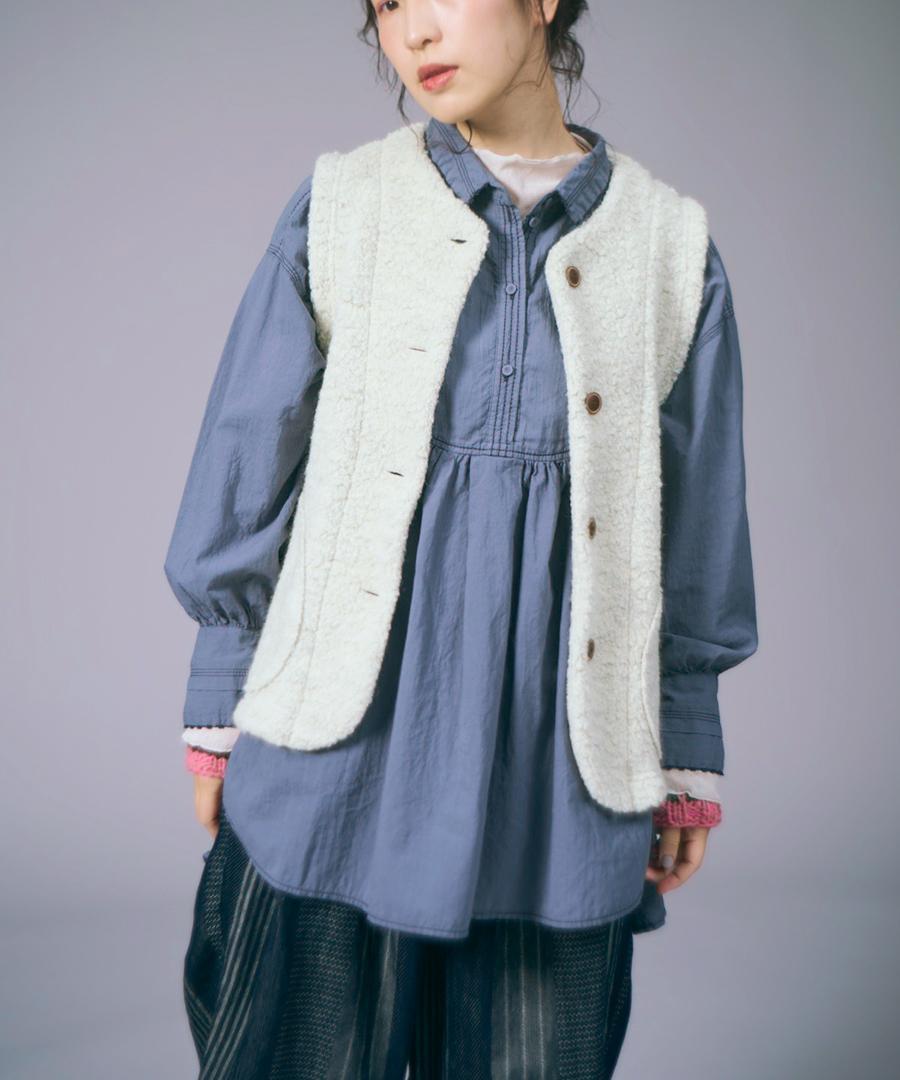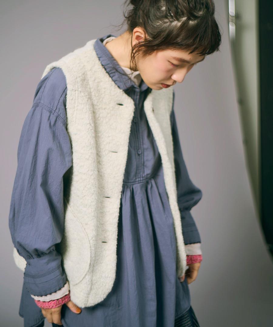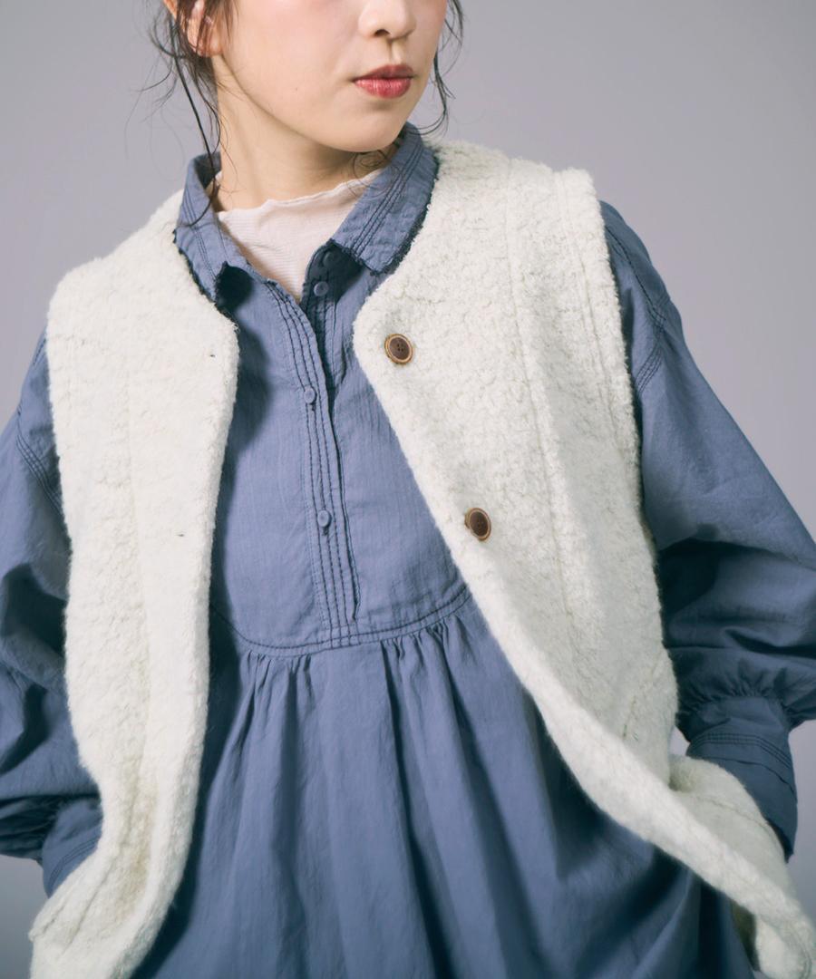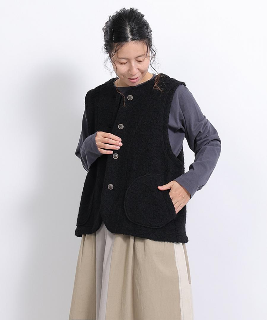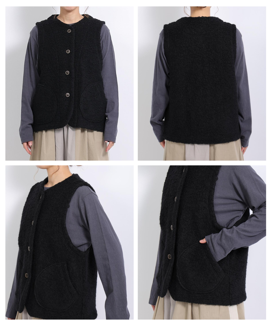 モコモコとした愛らしい表情が魅力のウールパイルベスト。