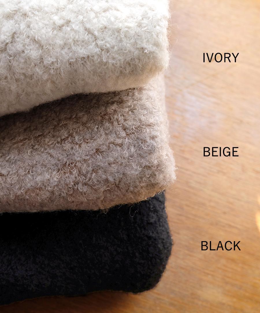 ふっくらと空気を含んだウールパイル素材が暖かく、裏面はコットンで天然素材ならではの良さを感じていただけます。