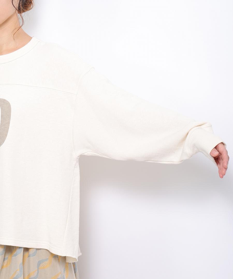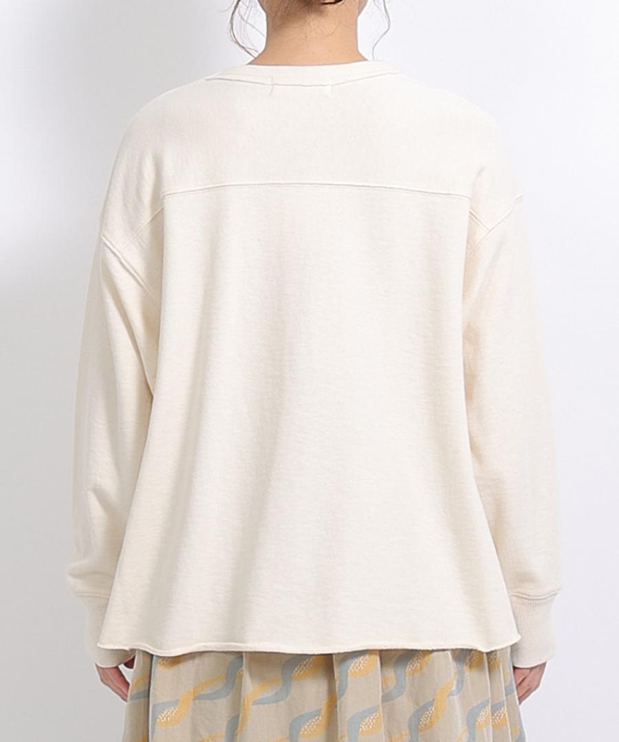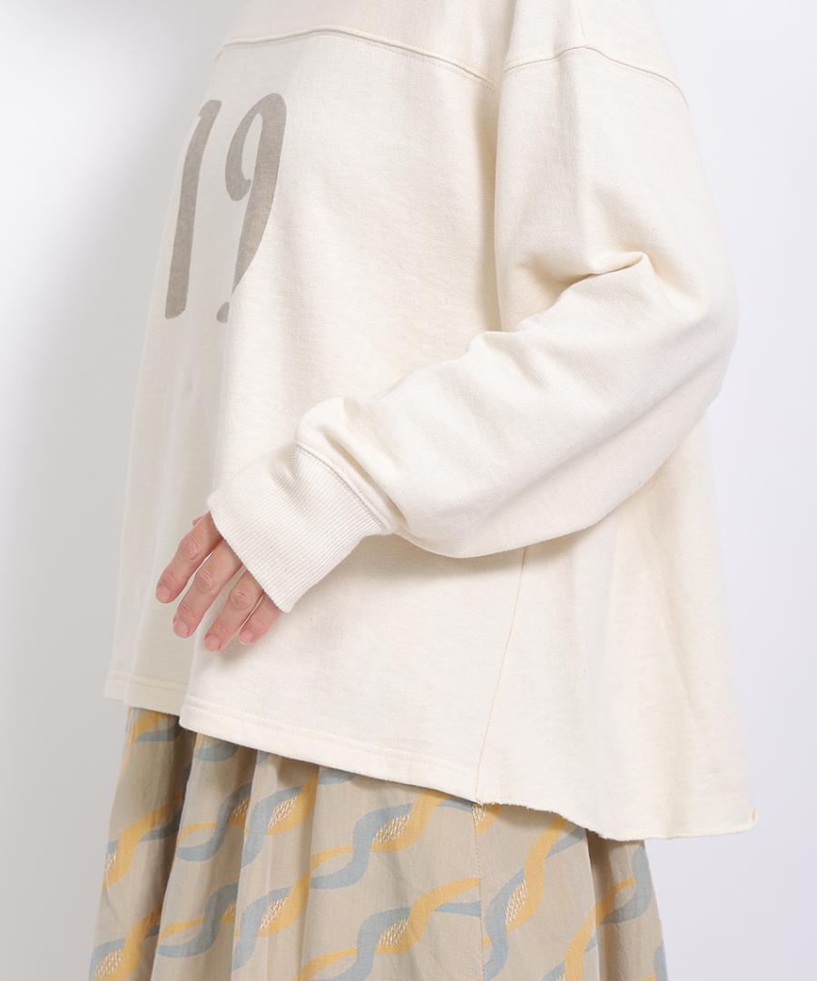 落ち綿をリサイクルした、程よい肉感と柔らかな着心地が魅力の裏毛素材で作られたプリントプルオーバー。