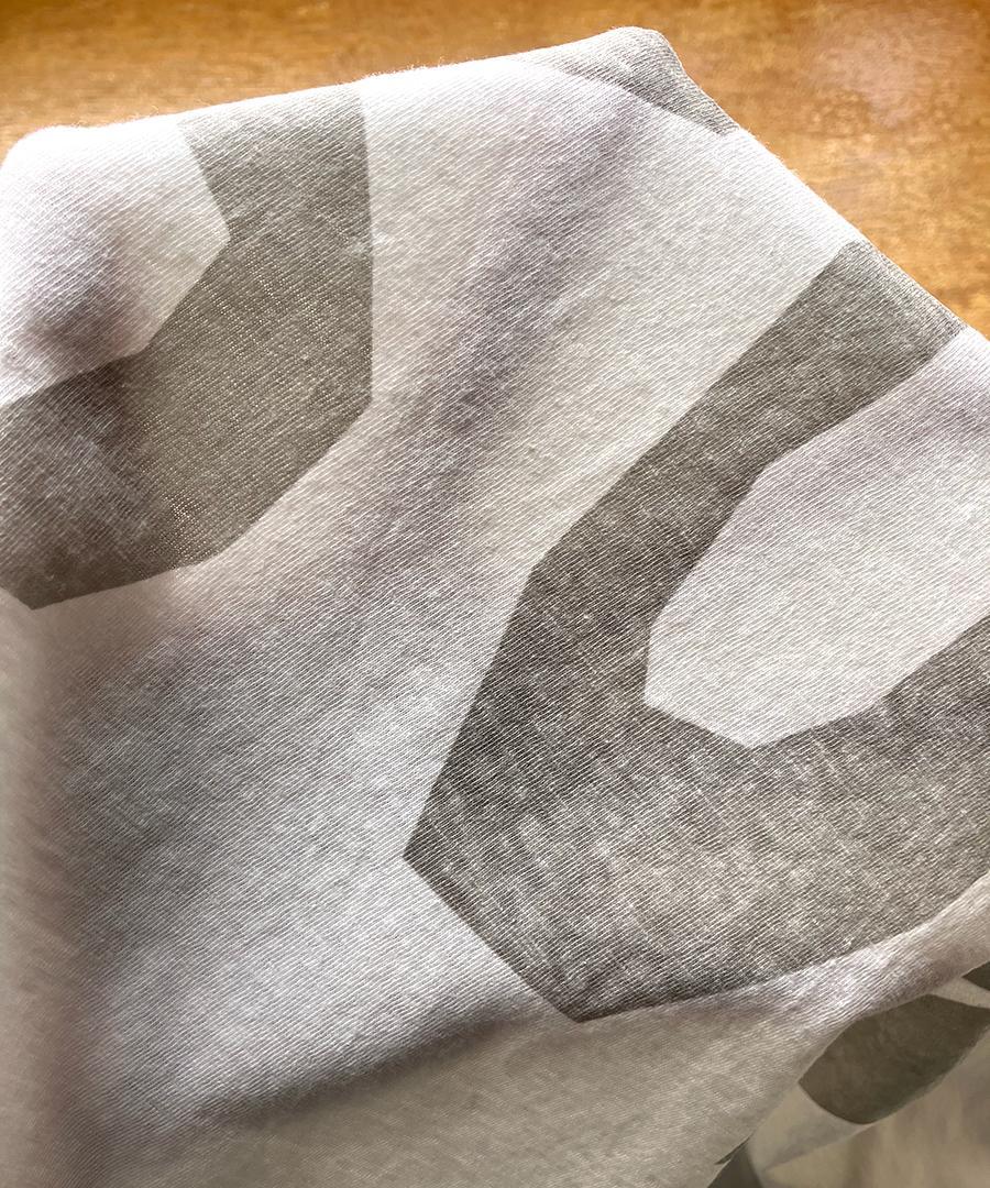 ナチュラルでリラックスした雰囲気が魅力的なラフィ天竺プリントTシャツ。
