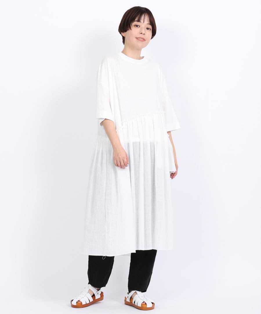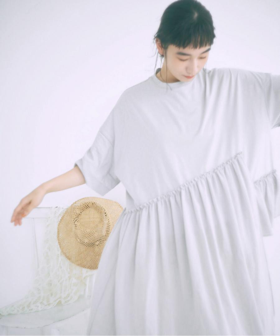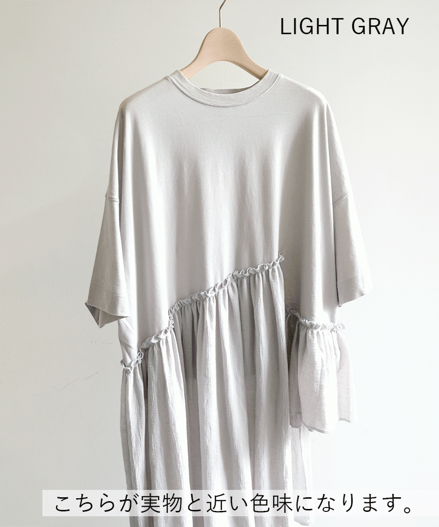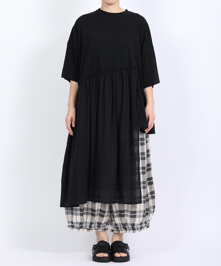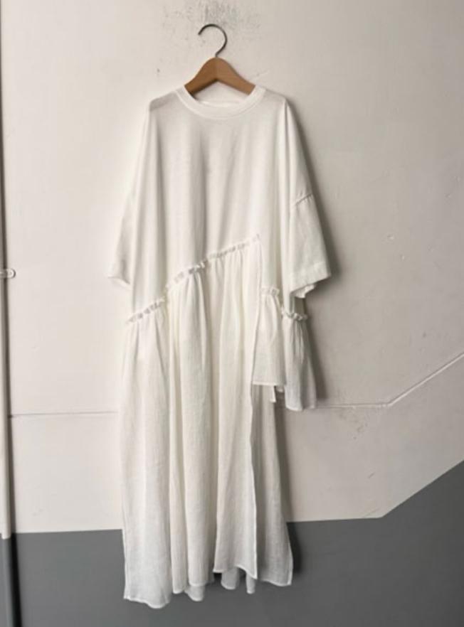 コットンウェービーボイル×コットン天竺 アシメワンピース