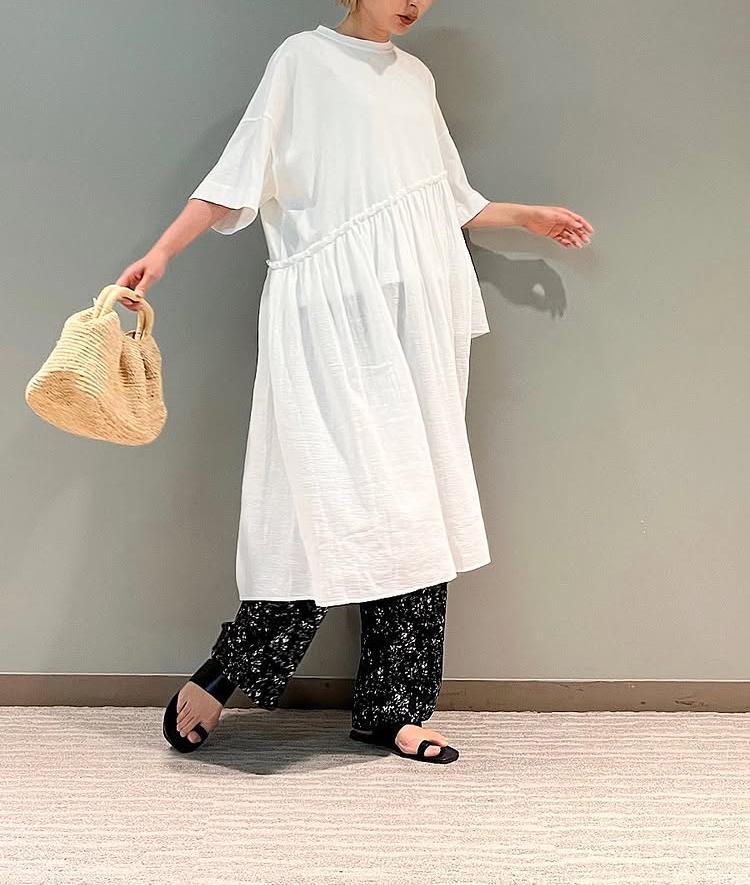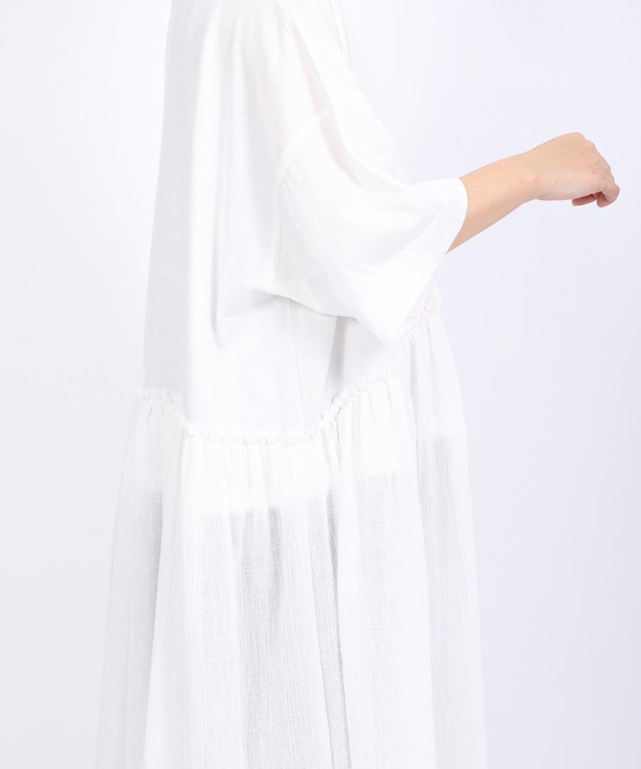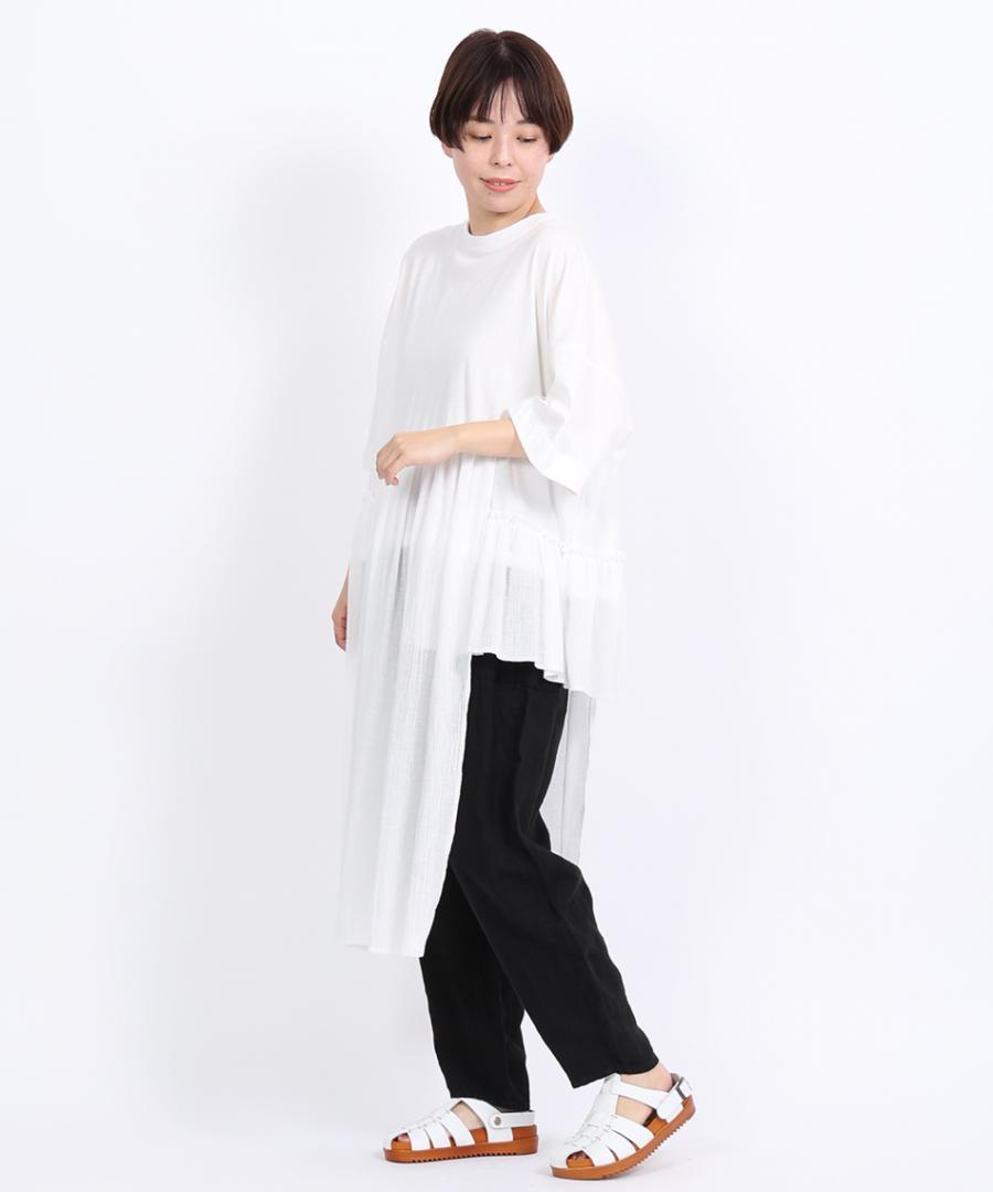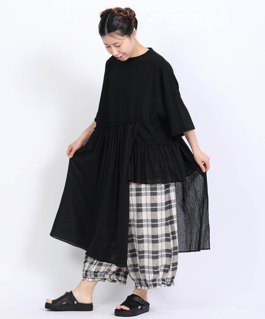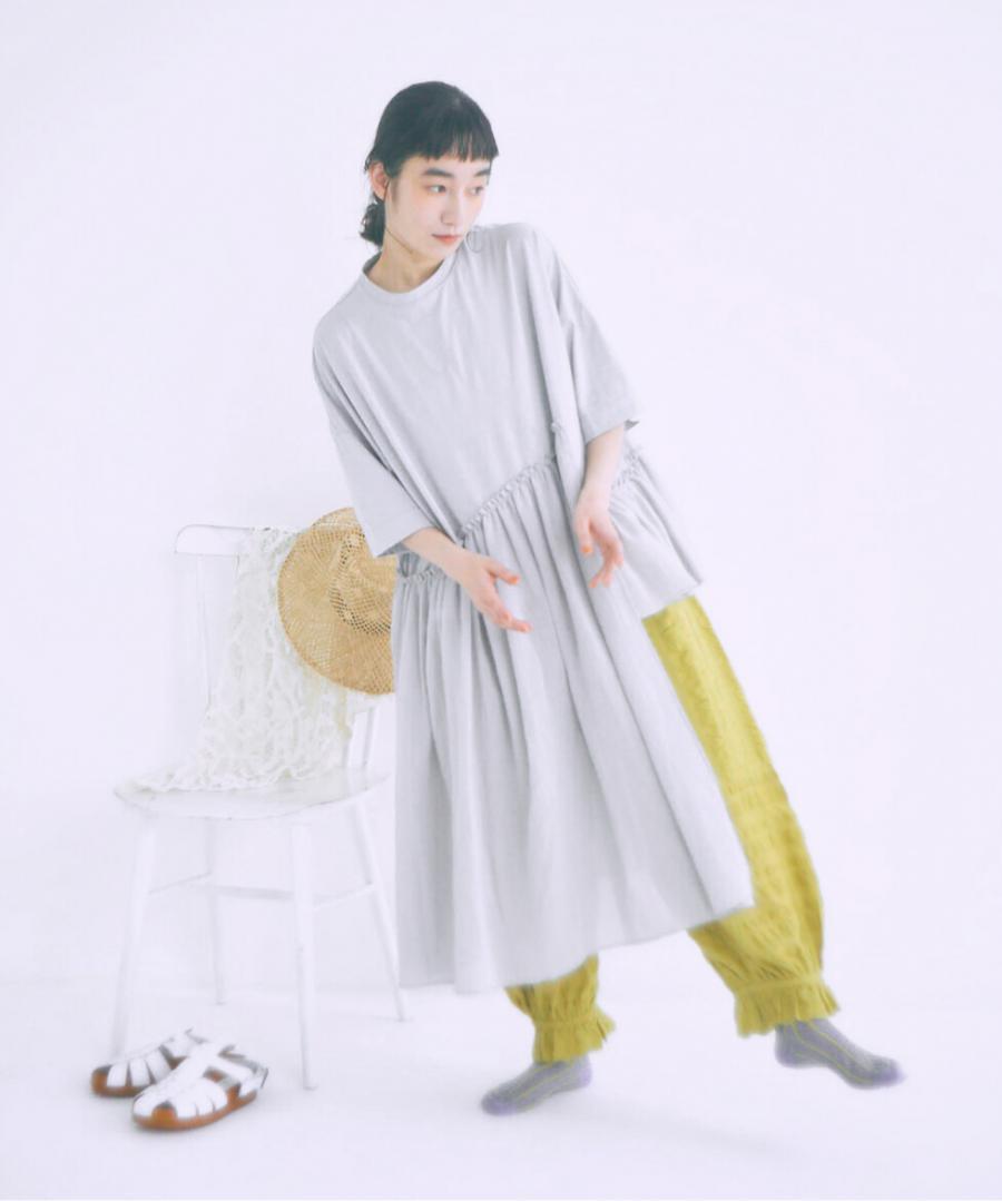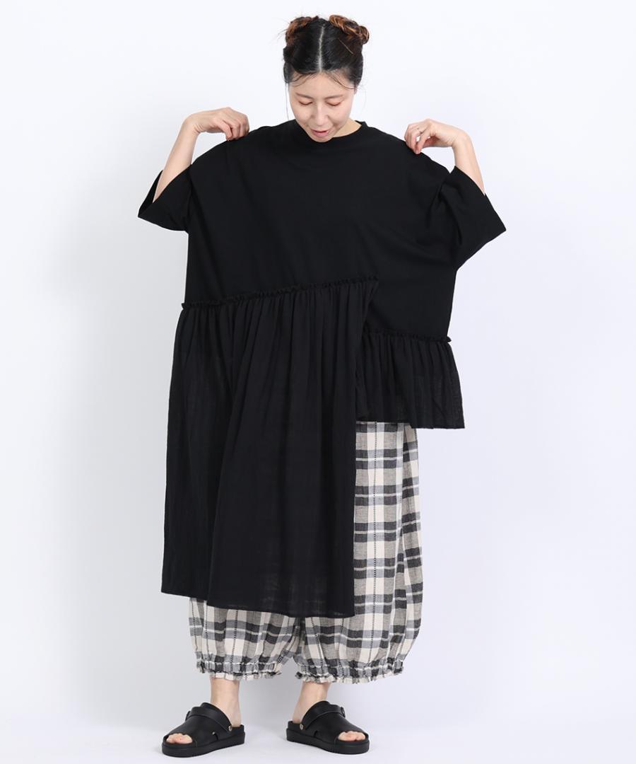 コットンウェービーボイル×コットン天竺 アシメワンピース
