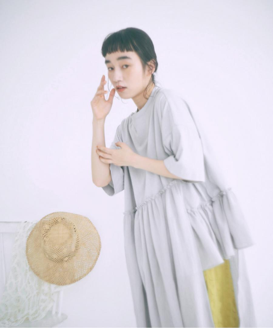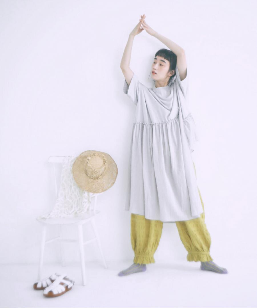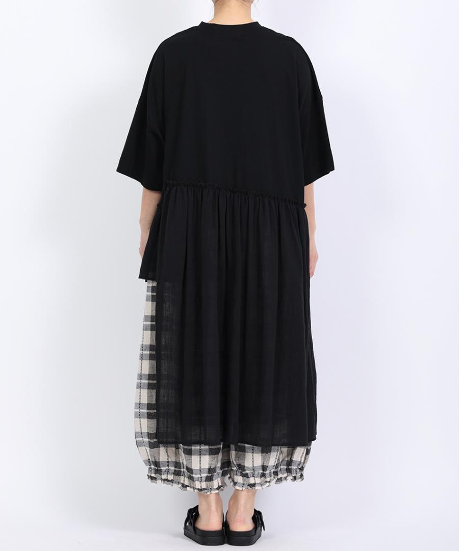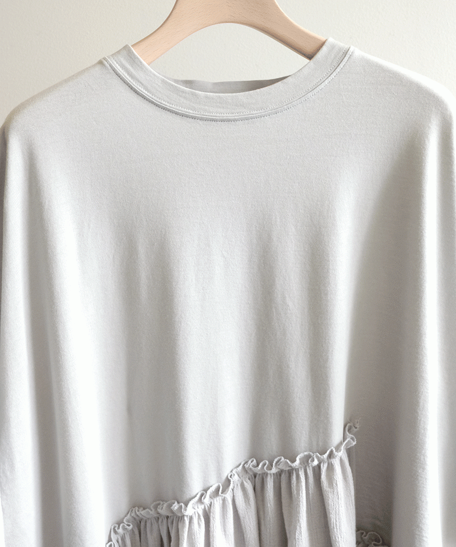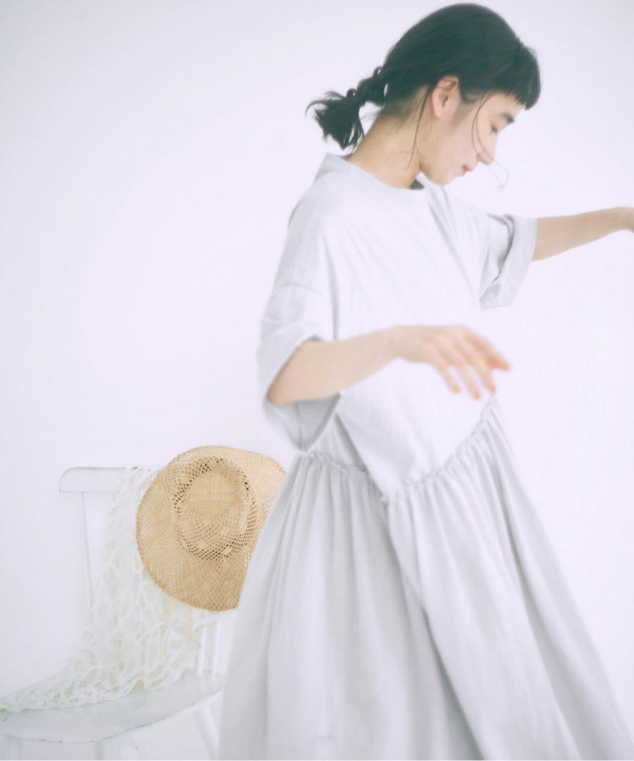 コットンウェービーボイル×コットン天竺 アシメワンピース