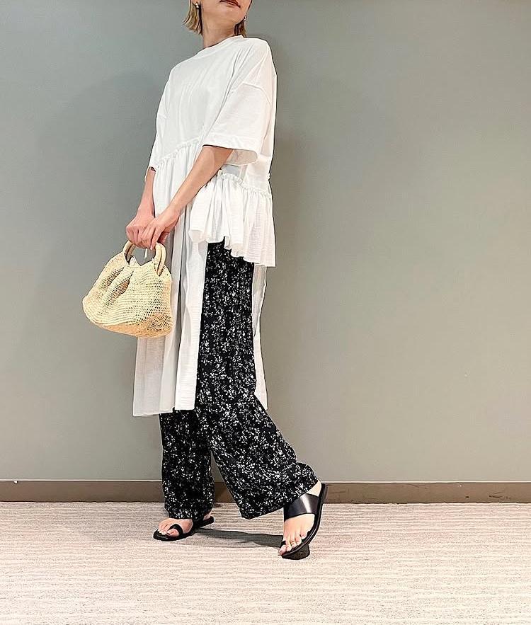 サンダルやスニーカーと合わせたリラックスコーデや、アクセサリーを加えて華やかさをプラスしたスタイルなど、様々なシーンで活躍してくれるアイテムです。