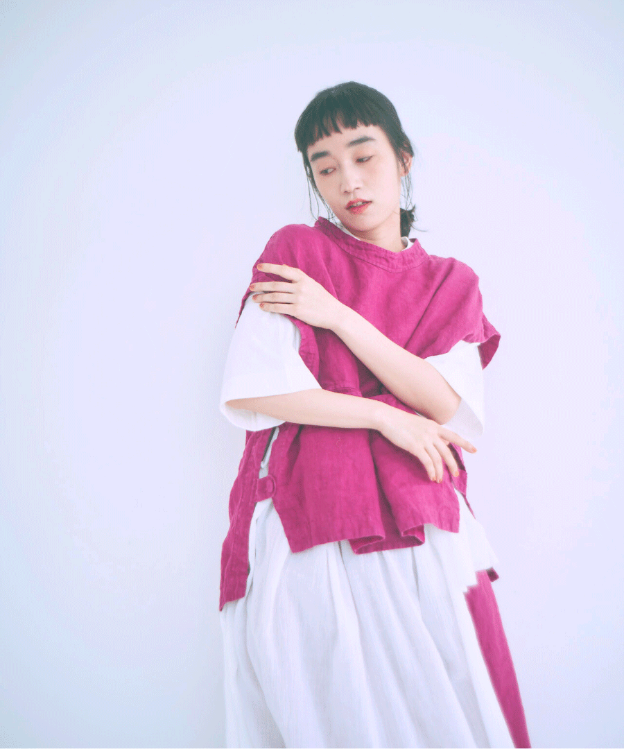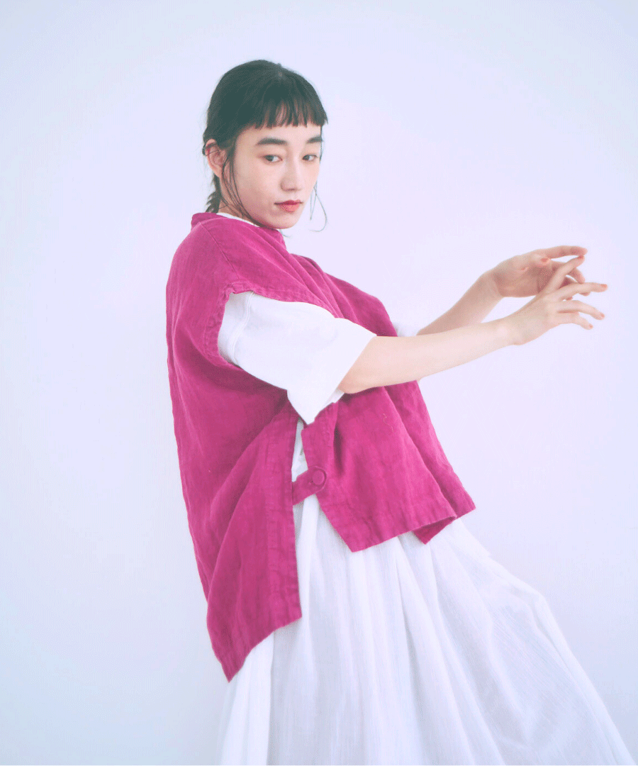 ベストを重ねると抜け感のあるレイヤードスタイルが完成します。