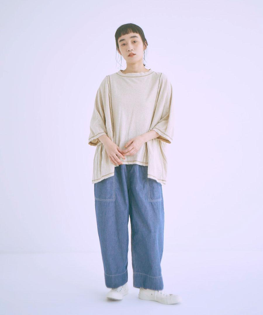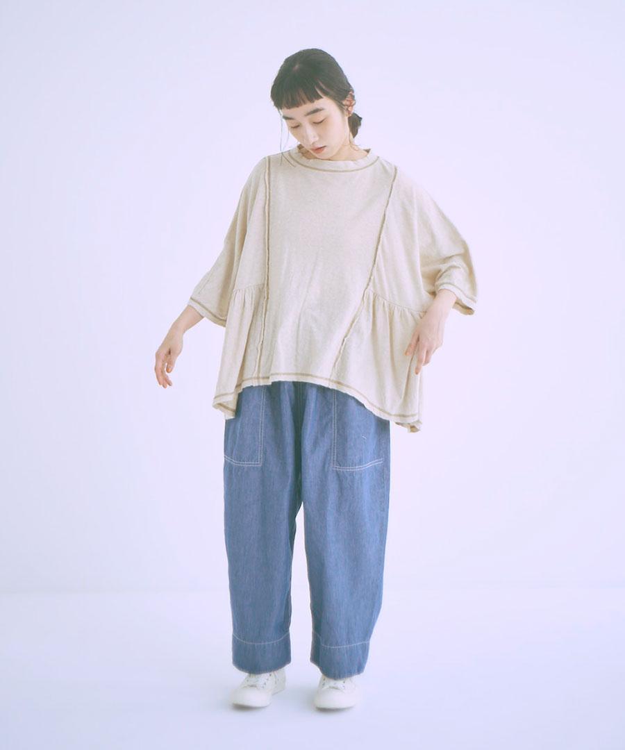 綿麻フィールド天竺 ギャザープルオーバー