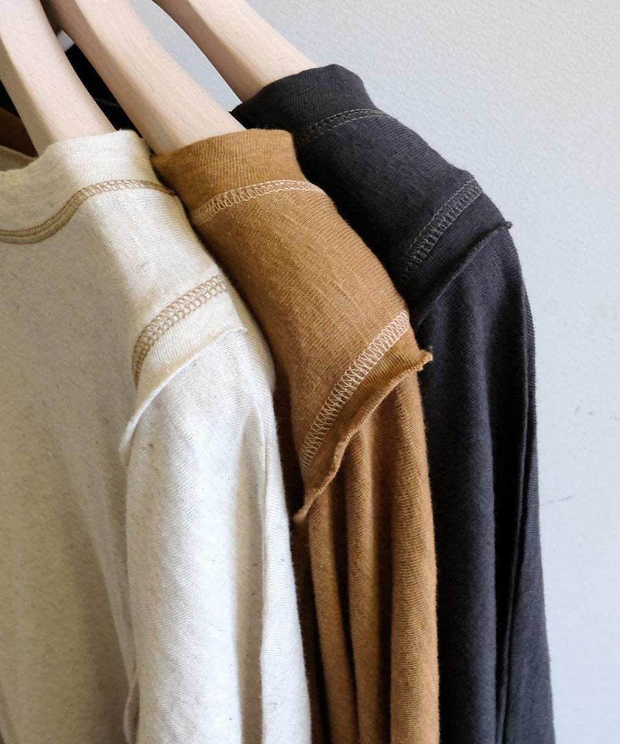 綿と麻のブレンドにより、肌に優しく、程よい肉感がありながら通気性も抜群です。